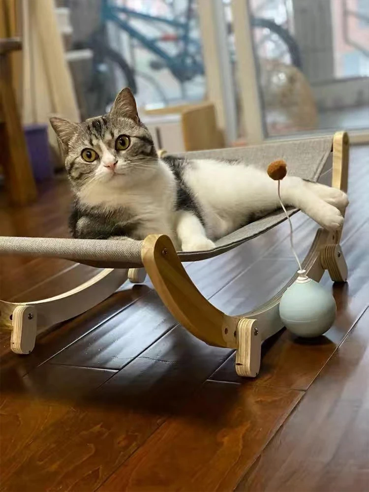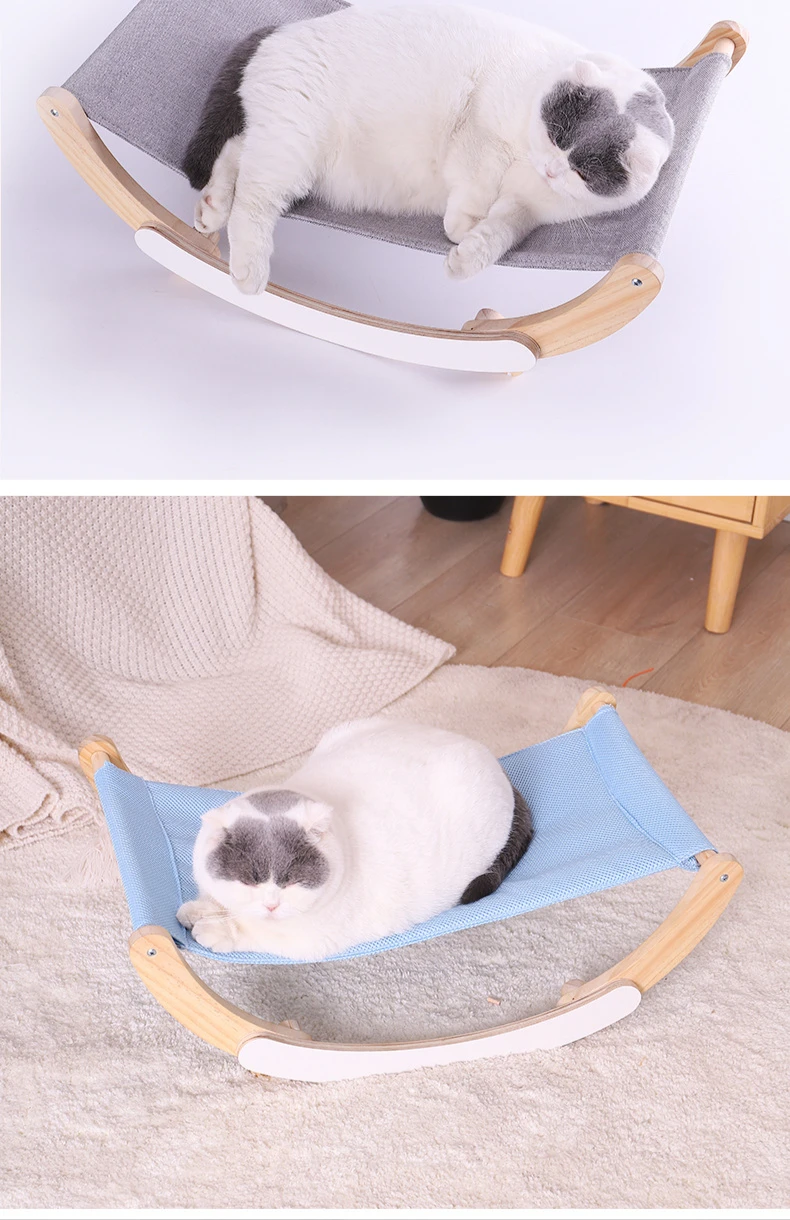 Cama para gatos para mascotas, columpio de madera, hamaca cómoda para gatos, madera maciza, duradera, marco de madera fuerte, cama divertida para gatito