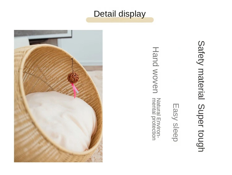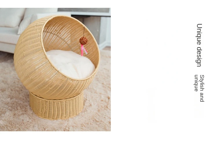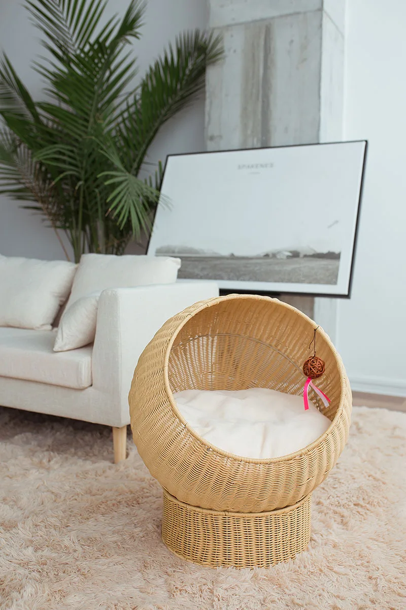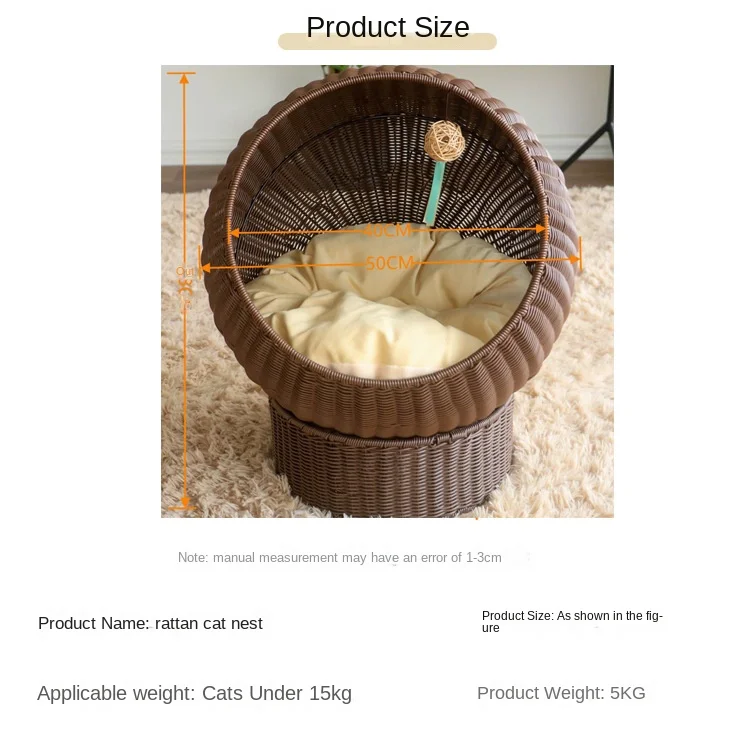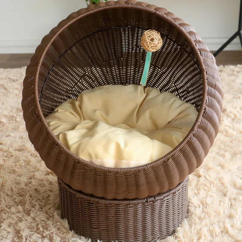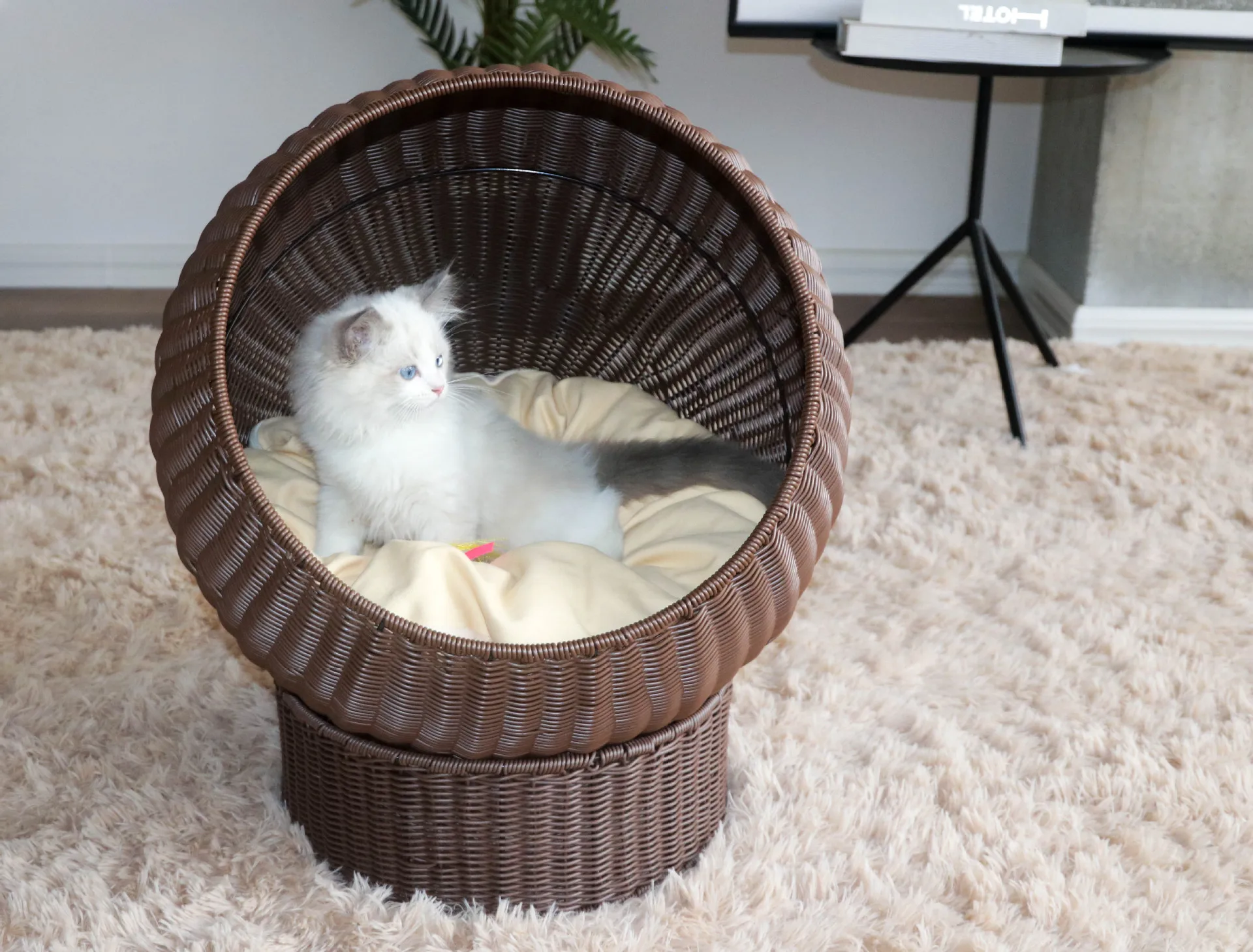 Cama de gato elevada tejida a mano con cojín, cesta de mimbre de imitación, casa de gatito con soporte, Cama de Gato elevada para gato de interior