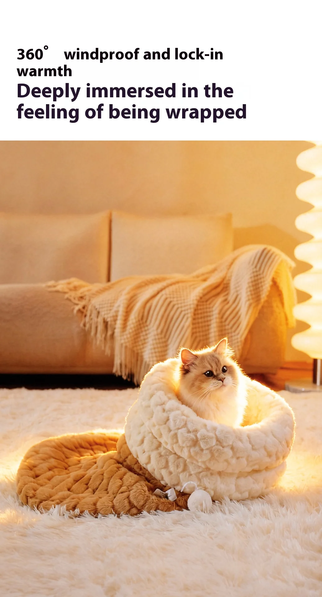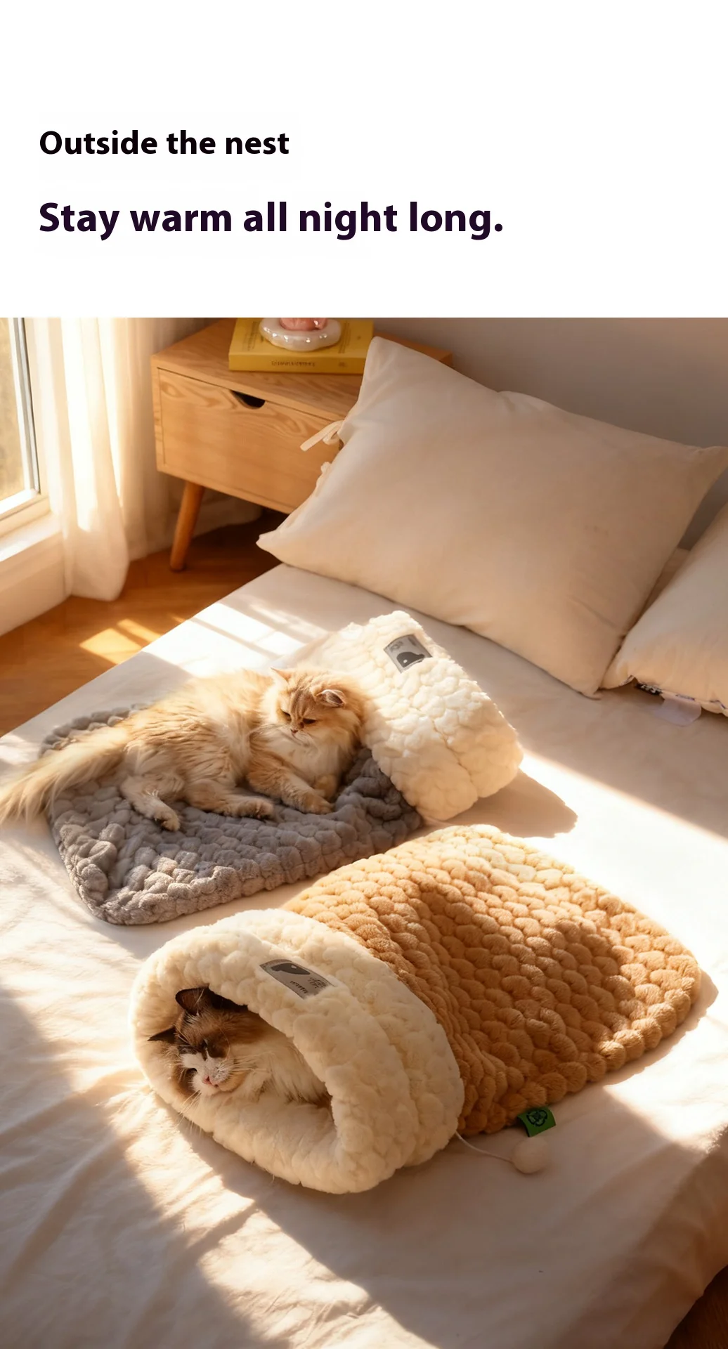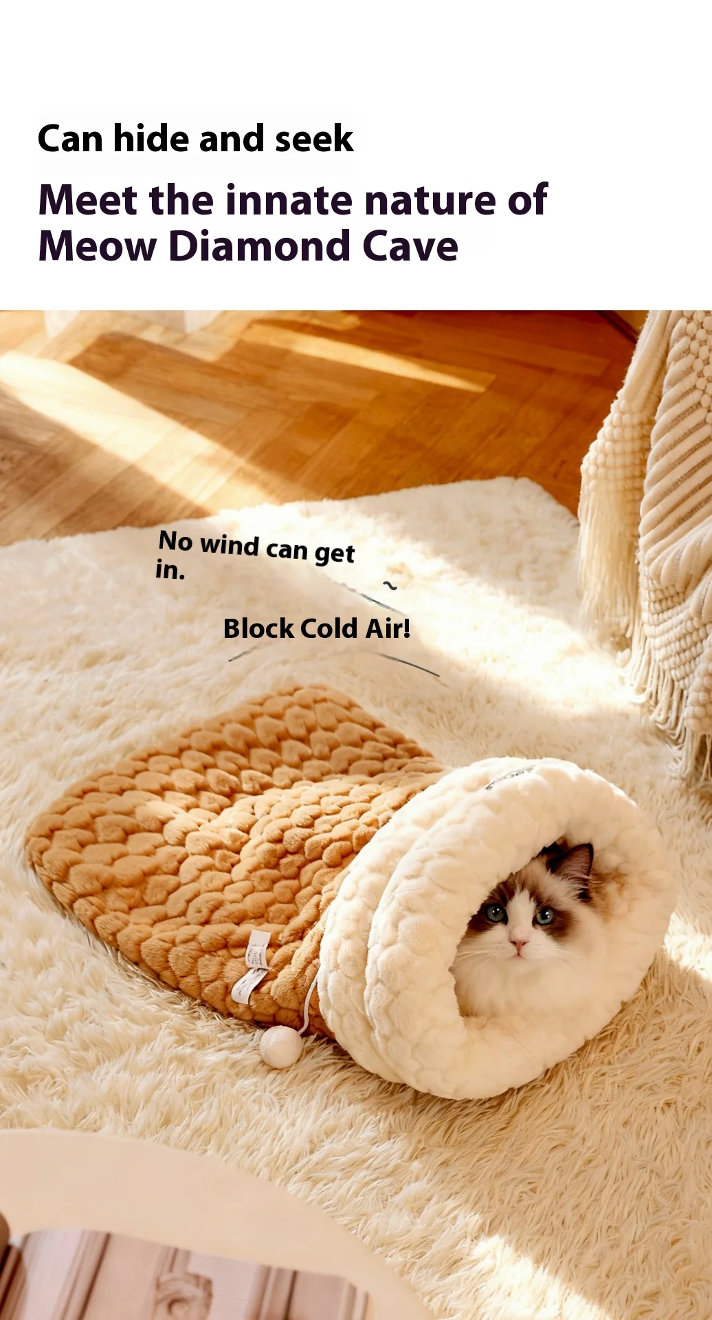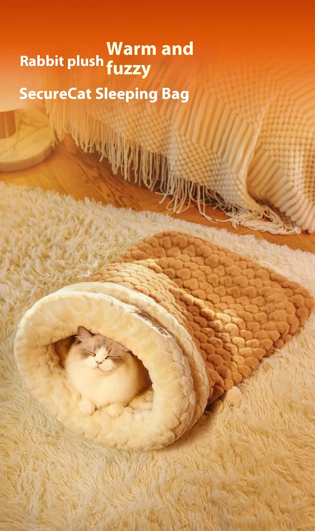 Cama para gatos cerrada con entrada de túnel: saco de dormir de piel de conejo de peluche autocalentable para invierno, escondite seguro para mascotas
