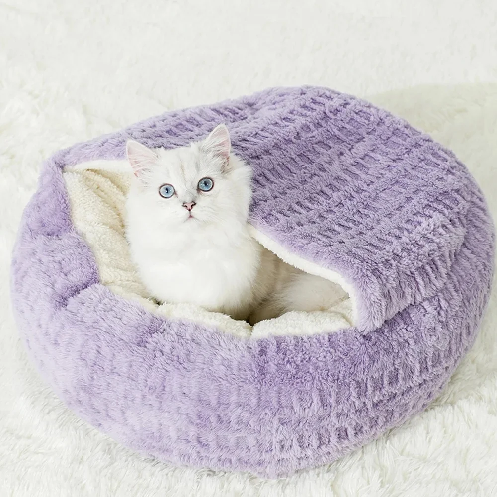 Cama para gatos, cueva suave para perros pequeños, nido para gatos, cojín de algodón cálido para mascotas, casa de concha para dormir profundo, perrera antideslizante para gatos y perros pequeños