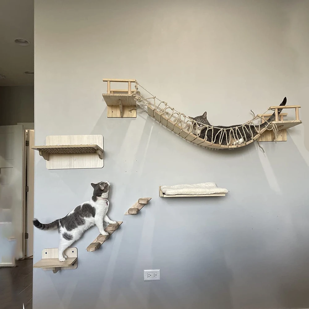 Cree un ambiente feliz y enriquecedor para su querido compañero felino con nuestros muebles para gatos en la pared.Observe cómo la felicidad y el bienestar de su gato florecen en su elevado reino.