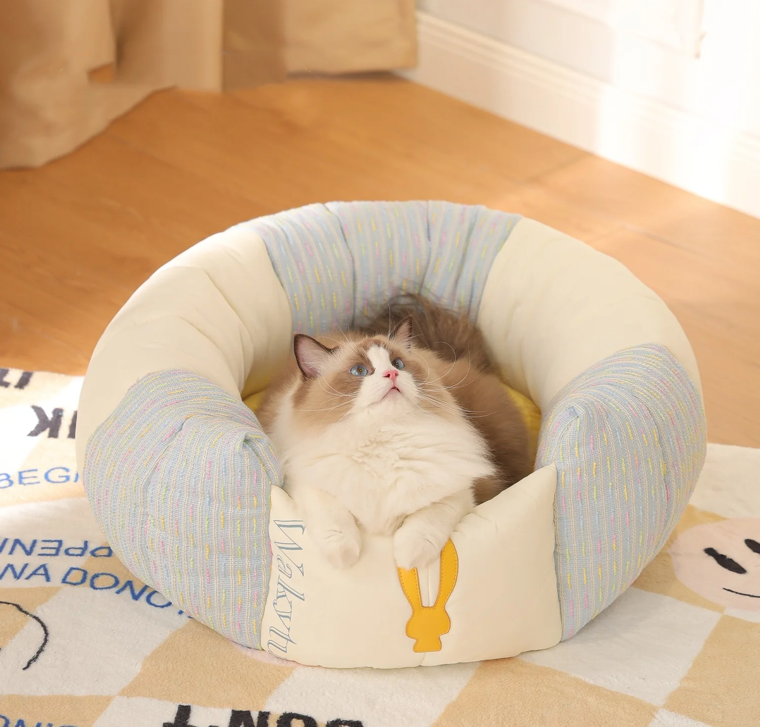Este es un prototipo de cama para gatos diseñado originalmente por nuestra empresa. Tiene un atractivo estético muy alto, con relleno regordete. Cuando las mascotas se encuentren en él, sentirán una sensación cómoda de estar envuelto. La parte inferior de la cama para gatos ha sido tratada con medidas antideslizantes. El producto está exquisitamente elaborado y está especialmente diseñado para dueños de mascotas que tienen pasión por los productos de alta calidad.