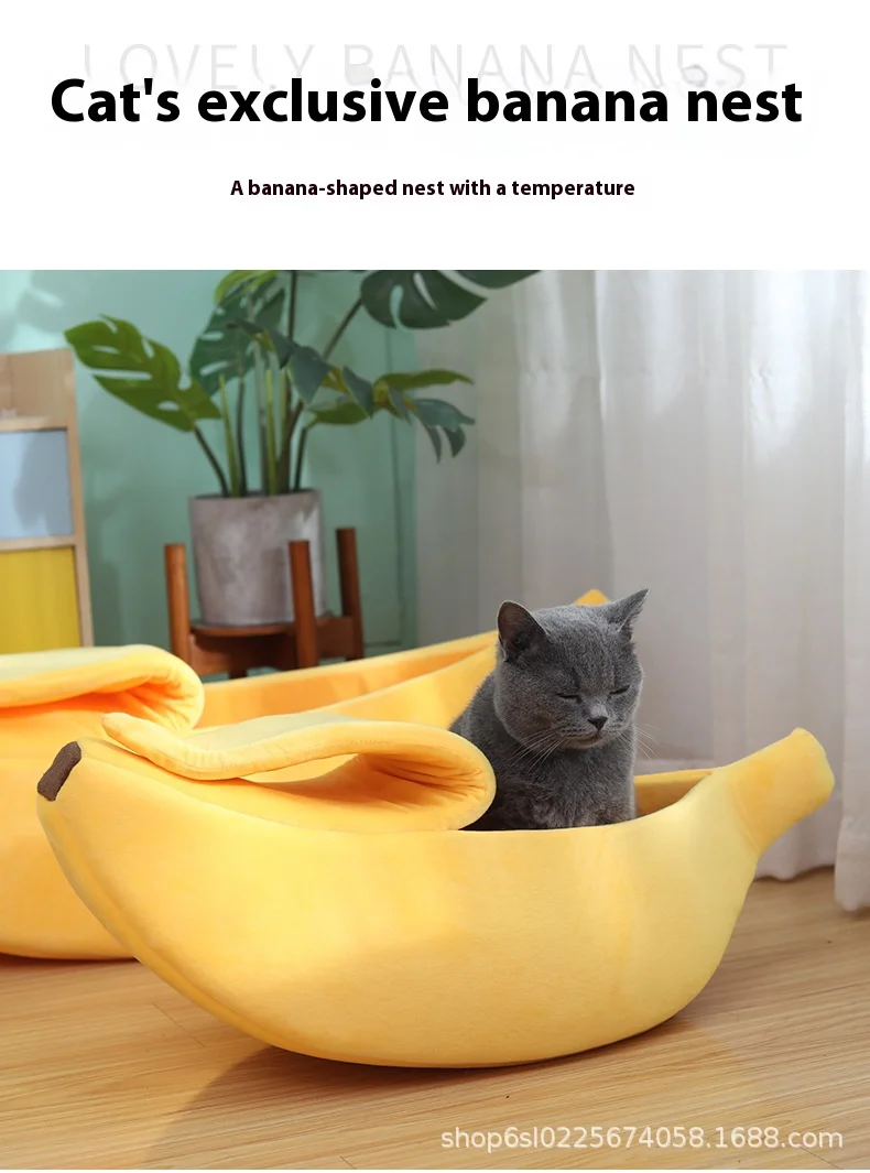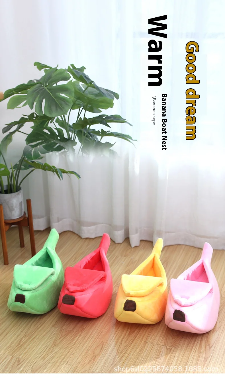 Cama para gatos con forma de plátano, camas divertidas y acogedoras para gatos, cesta portátil duradera y cálida para mascotas, perrera, cojín para perros, suministros para gatos Multicolor
