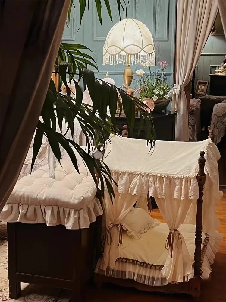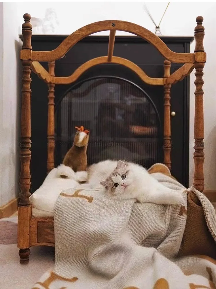 Cama para gatos de madera maciza, camas para perros y gatos, muebles Retro para casa para gatos, camas para mascotas, gatos, suministros para perros, tienda para ocultar casas para mascotas para perros