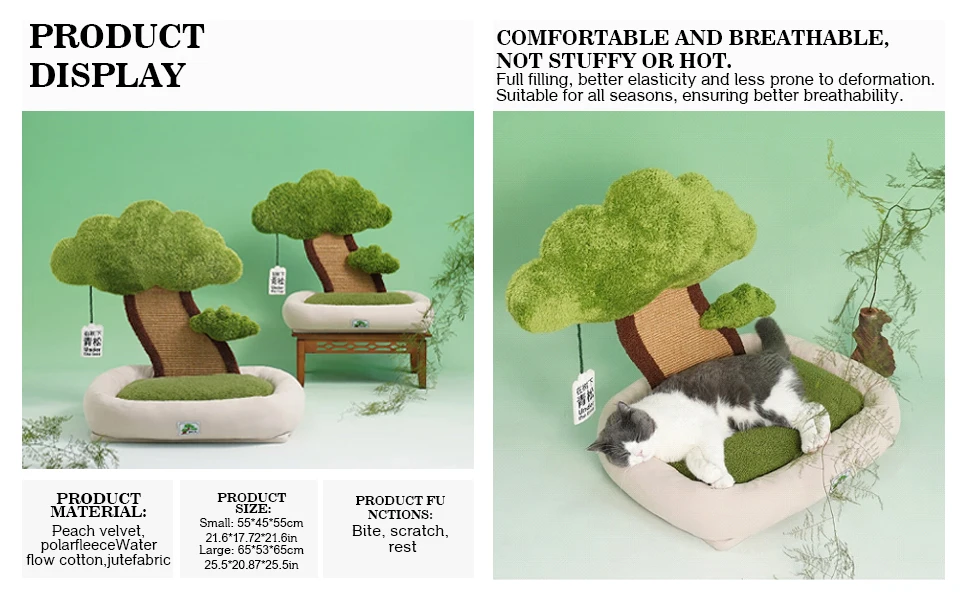 Cama para gatos con rascador para gatos, diseño de arena para gatos de estilo único, cama grande para gatos con poste rascador, cama de diseño minimalista