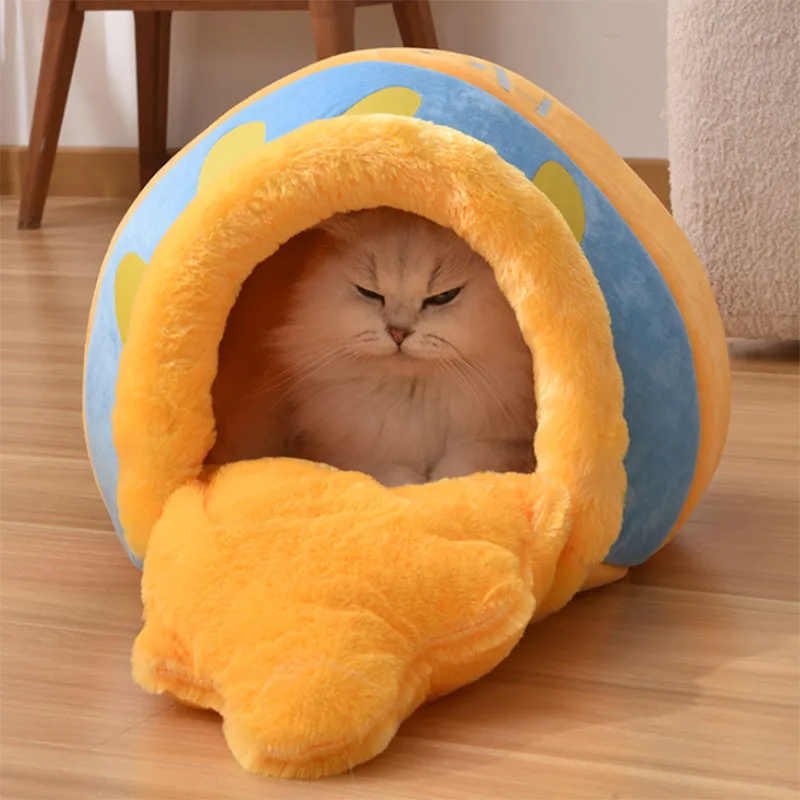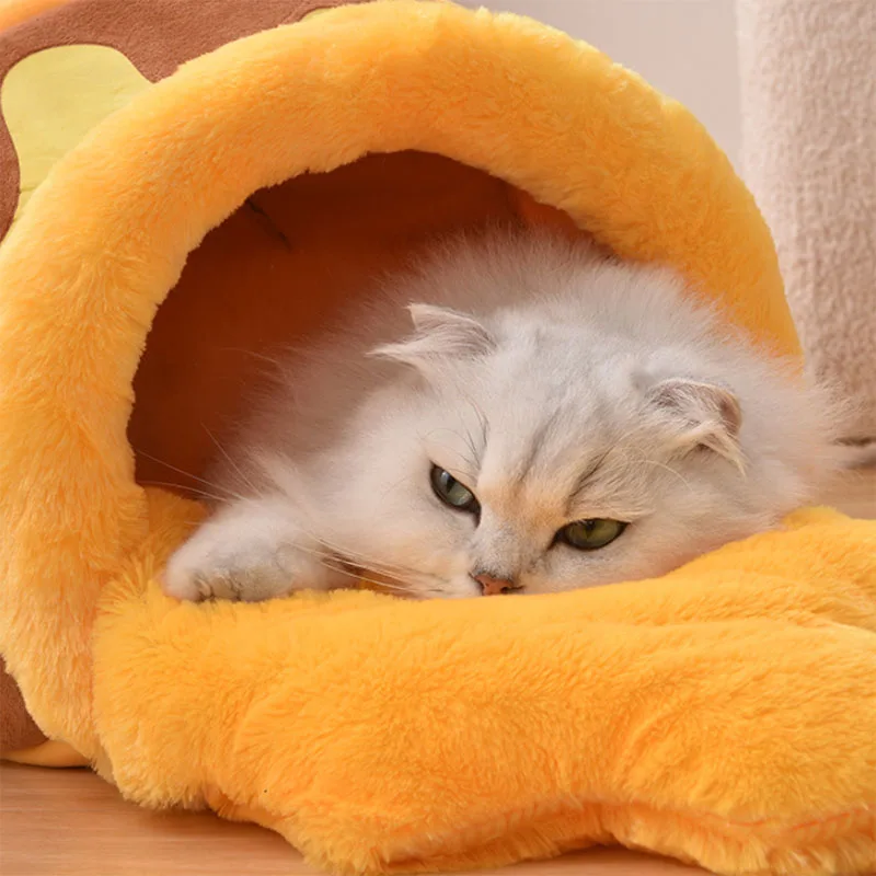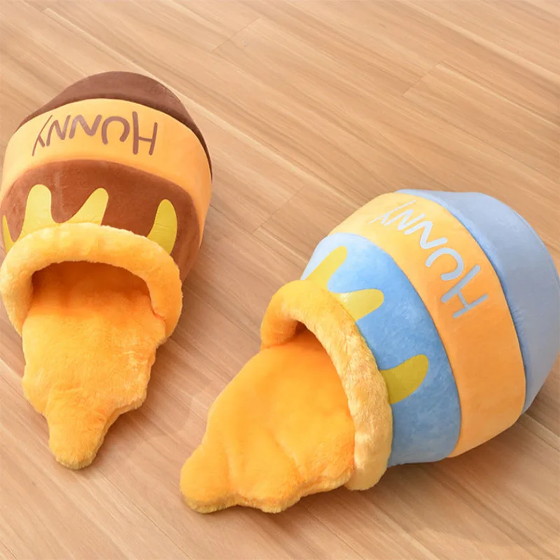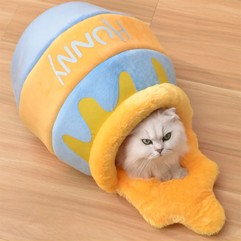 Cama para gatos con tarro de miel, cama para mascotas cálida semicerrada universal para las cuatro estaciones, cama para gatos, estera para dormir para perros pequeños y medianos