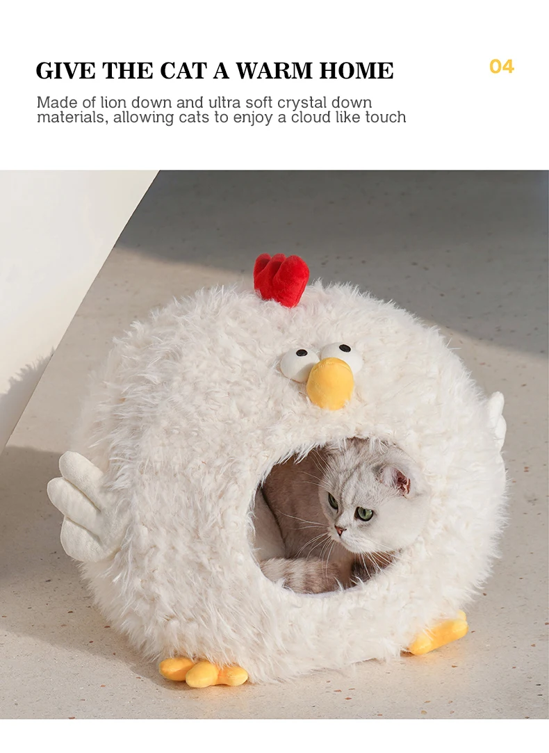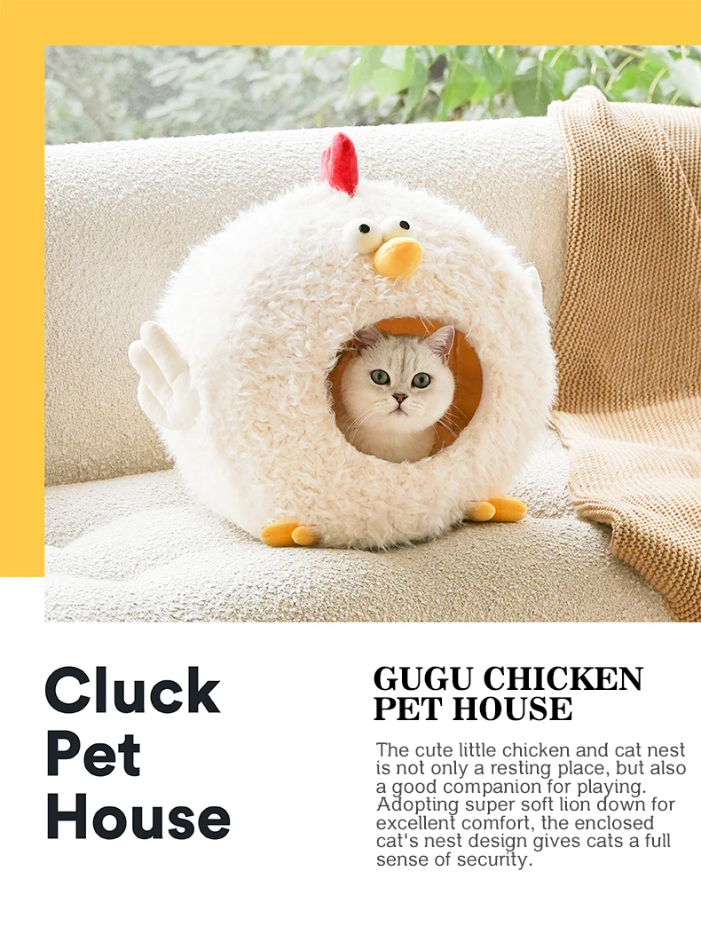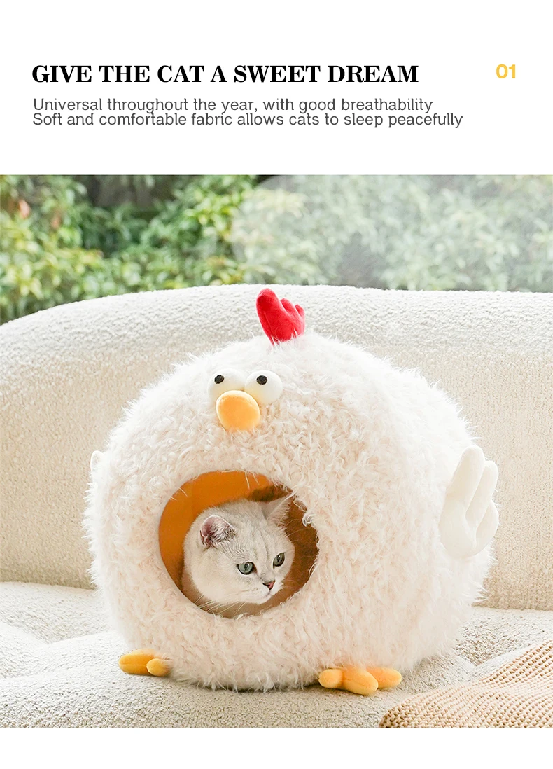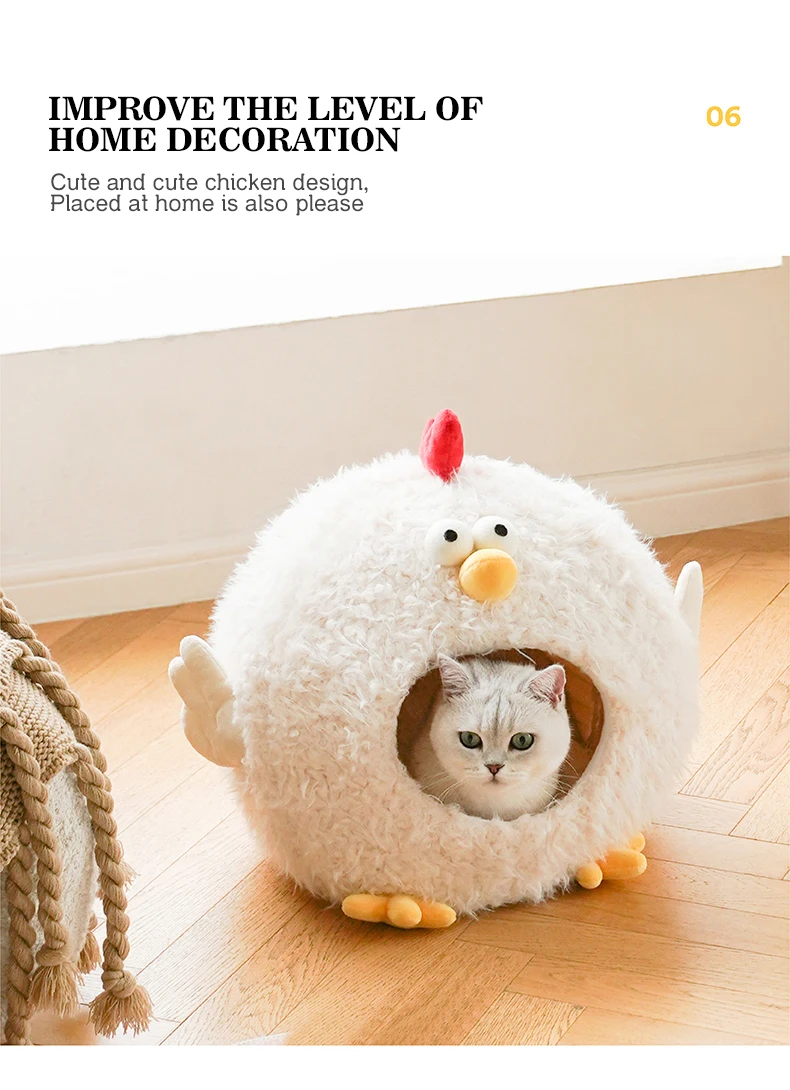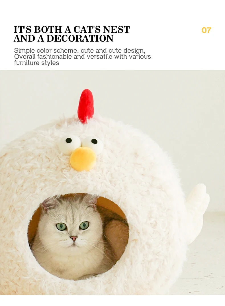 El exclusivo diseño de pollito añade un toque de ternura a su hogar al tiempo que proporciona un complemento funcional y elegante al espacio vital de su mascota.