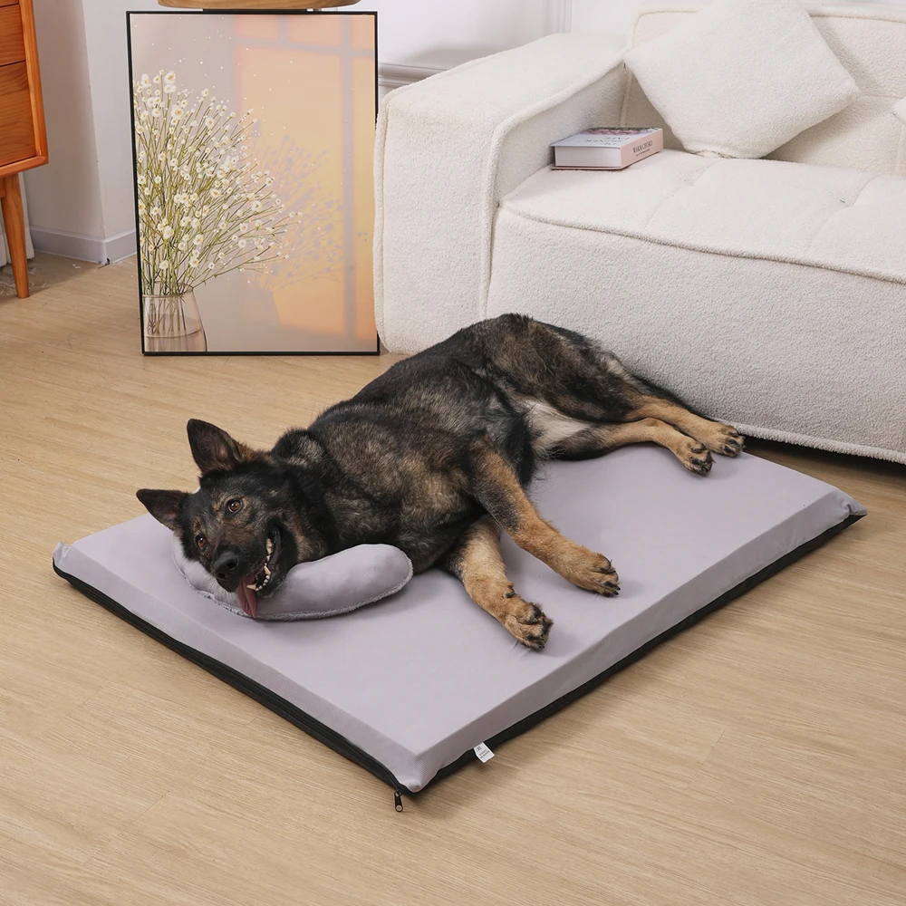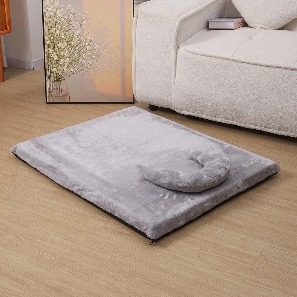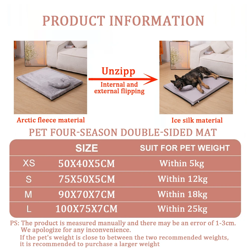 Un lado está hecho de material de seda helada y tiene una base antideslizante. Adecuado para usar en primavera y verano. Abra la cubierta del nido para mascotas con la cremallera, cuando se voltee por dentro y por fuera, se convierte en material de terciopelo ártico con un anti- base antideslizante, apta para uso en otoño e invierno.
