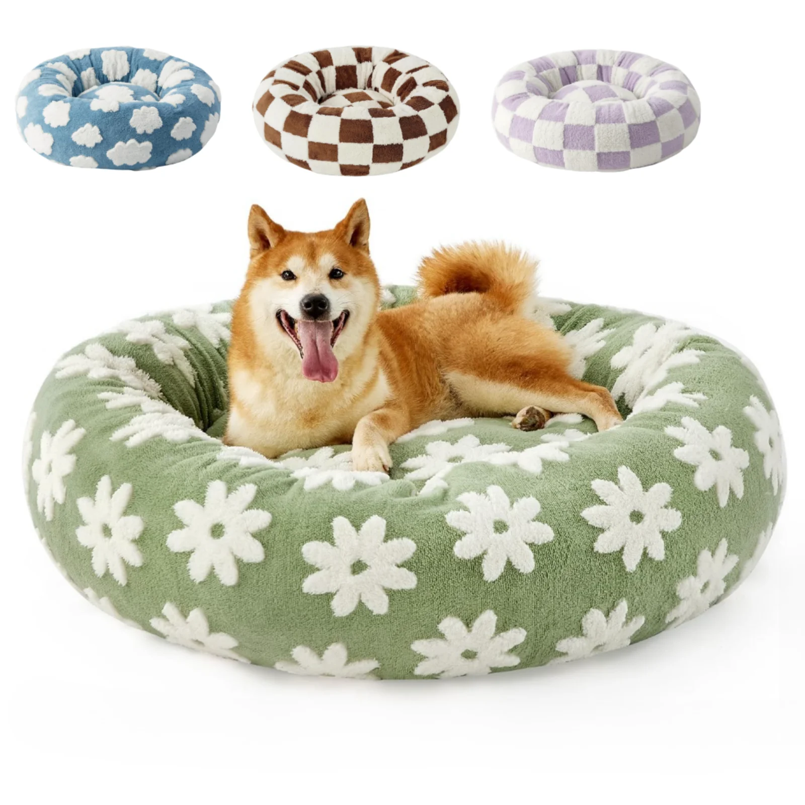 Cama grande para perros Donut, camas redondas para gatos de interior, camas calmantes antiansiedad para mascotas, camas modernas lavables, felpa de peluche y antideslizantes