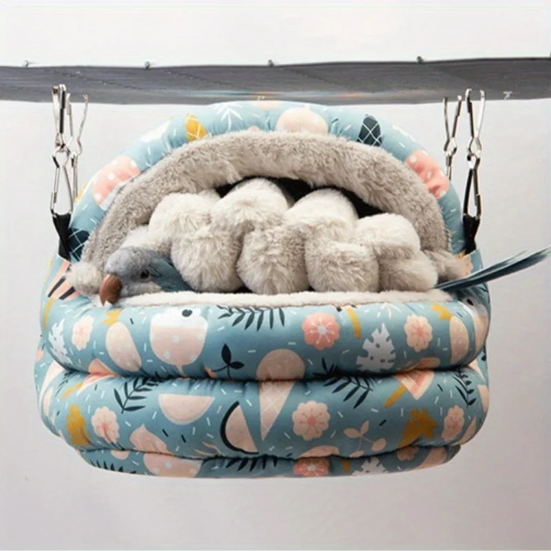 Cama gruesa de loro y cacatúa, casa cálida, nido de pájaro, hamaca colgante de invierno, cama para dormir de pájaros, cama oculta para periquito Quaker