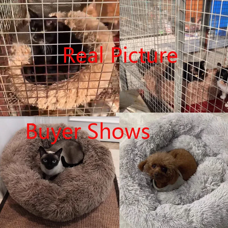 Cama para perros y gatos, cesta larga de felpa, sofá cama redondo para perrera pequeña, manta, estera, cama para dormir de invierno para gatos, suministros de productos