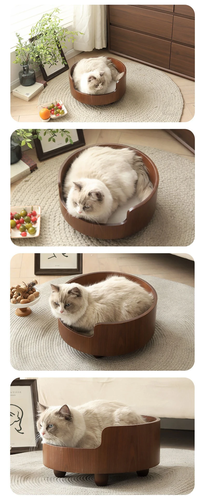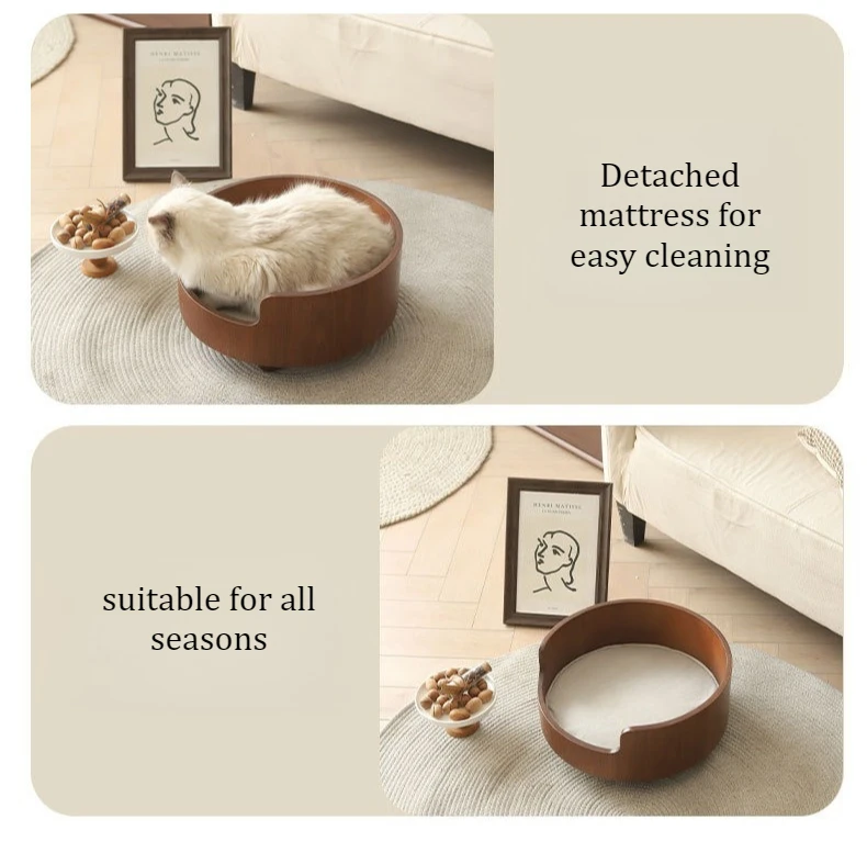 Cama de lujo para gatos, camas de madera para interiores, estera extraíble, gruesa, fácil de limpiar, bandeja para gatos, sofás para sala de estar, tapicería para el hogar