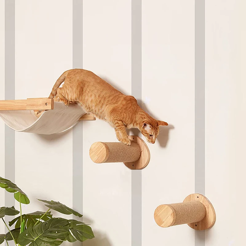 Cama de madera montada en la pared para gatos, escalón de Sisal, poste rascador, marco de escalada, muebles, casa de mascotas, hamaca