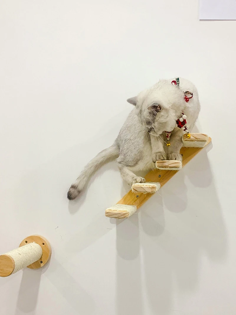 Esta hamaca se adhiere directamente a la pared, proporciona un espacio vertical para que su gato se coloque, trepe y observe los alrededores.