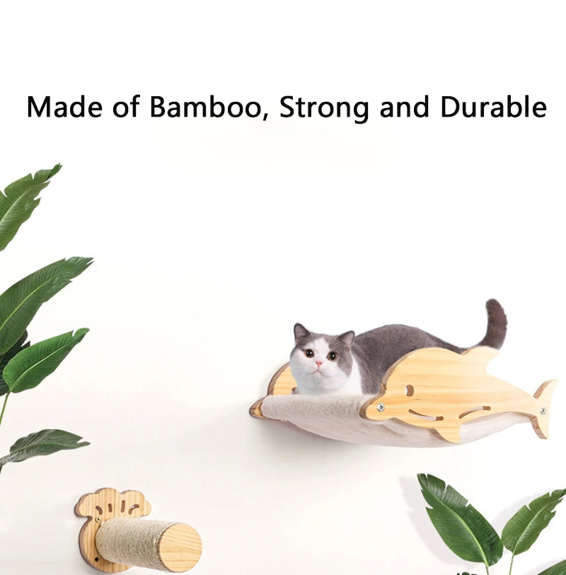 La hamaca para gatos está hecha de madera de bambú, resistente y duradera. Puede estar seguro de que su gato está jugando con seguridad.