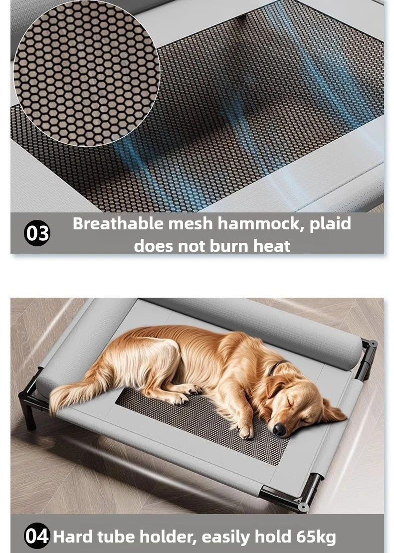 Medio: 66 * 45 * fuera del suelo 17 Grande: 88 * 65 * fuera del suelo 17 Instalación del producto: requiere montaje Tela suave Soporte de suspensión, soporte de tubo duro, fácil de sostener 65 kg. Almohada grande.Tacto delicado, almohada semicerrada, protección para el cuello para dormir. Malla fresca, transpirable sin cubrir el calor. Suspendido 17 cm del suelo, a prueba de humedad, humedad y diarrea. Atención: 1. Debido a las diferentes herramientas de medición, la medición manual tendrá un error de 1-2 cm. ¡El tamaño específico recibe el tema real! 2. Disparo físico, debido a la diferente luz de disparo, la pantalla puede tener alguna diferencia de color, ¡consulte el tema real!