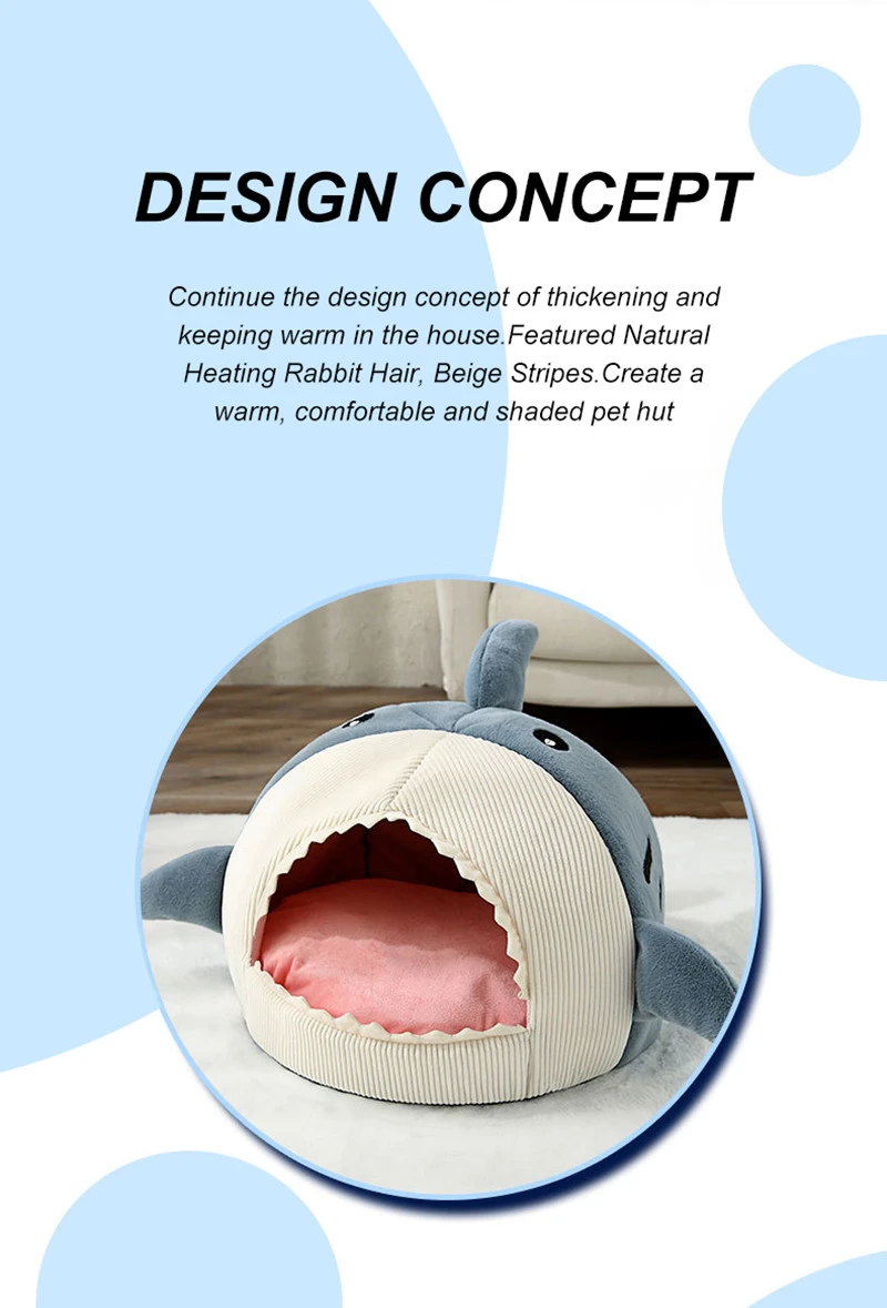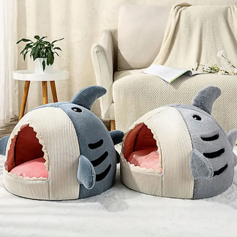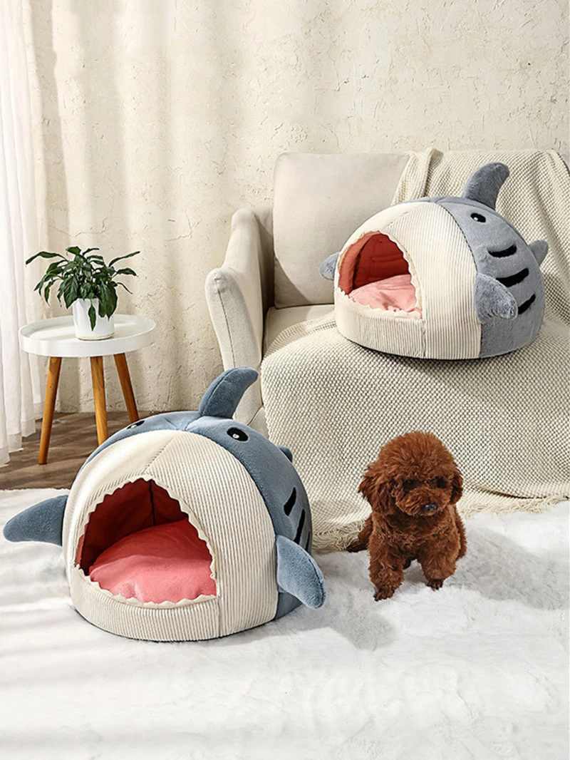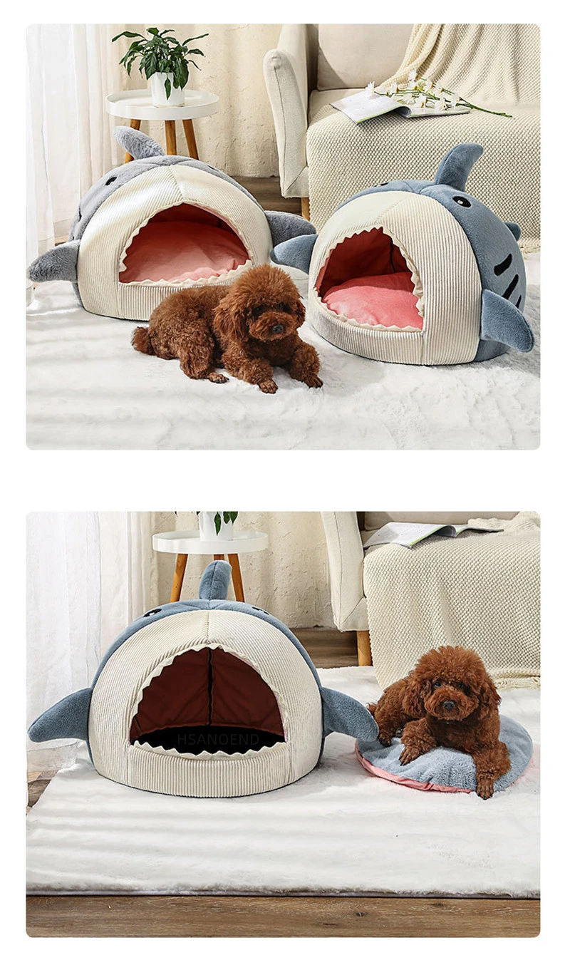 Casa para mascotas con forma de tiburón cálido para invierno, cama para perros y gatos, perrera, diseño semicerrado de boca grande, saco de dormir para mascotas, almohadilla suave lavable