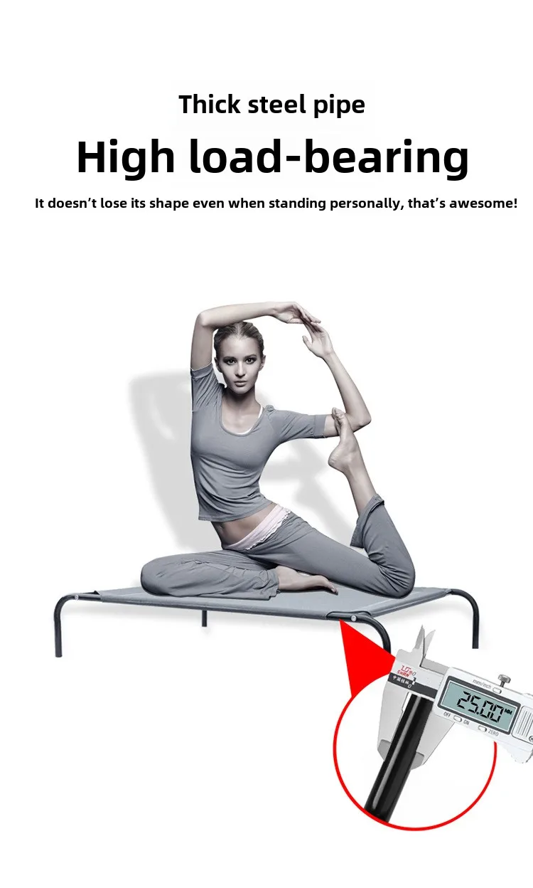 Esta cama para perros es adecuada tanto para uso interior como exterior.Su diseño transpirable garantiza que su mascota se mantenga seca y cómoda en el patio trasero, la terraza o junto a la piscina.Es fácil de transportar y muy adecuado para viajar con su perro.Ya sea para acampar, hacer un picnic, entrenar o hacer caminatas, ¡a su gato o perro le encantará esta cama de apoyo al aire libre!
