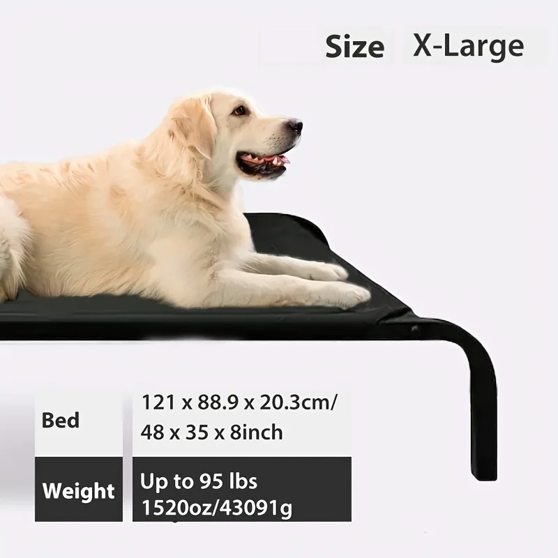 3.Esta cama elevada para perros presenta un diseño refrescante que mantiene a su mascota alejada de terrenos húmedos y fríos.La malla transpirable permite la circulación del aire, asegurando que su mascota se mantenga cómoda incluso en climas cálidos.Su altura es adecuada para perros de todas las edades, especialmente para perros pequeños, perros mayores y perros grandes con artritis.Además, las patas del marco tienen cubiertas protectoras para proteger el suelo.