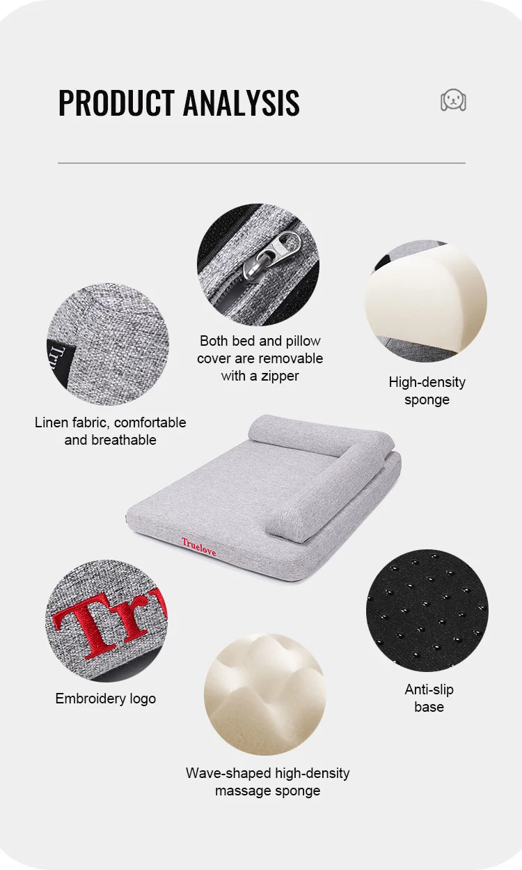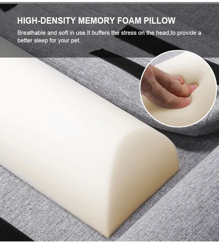 (v) Diseño en forma de L de doble refuerzo que permite a su mascota dormir en una variedad de posiciones, la almohada también es extraíble.