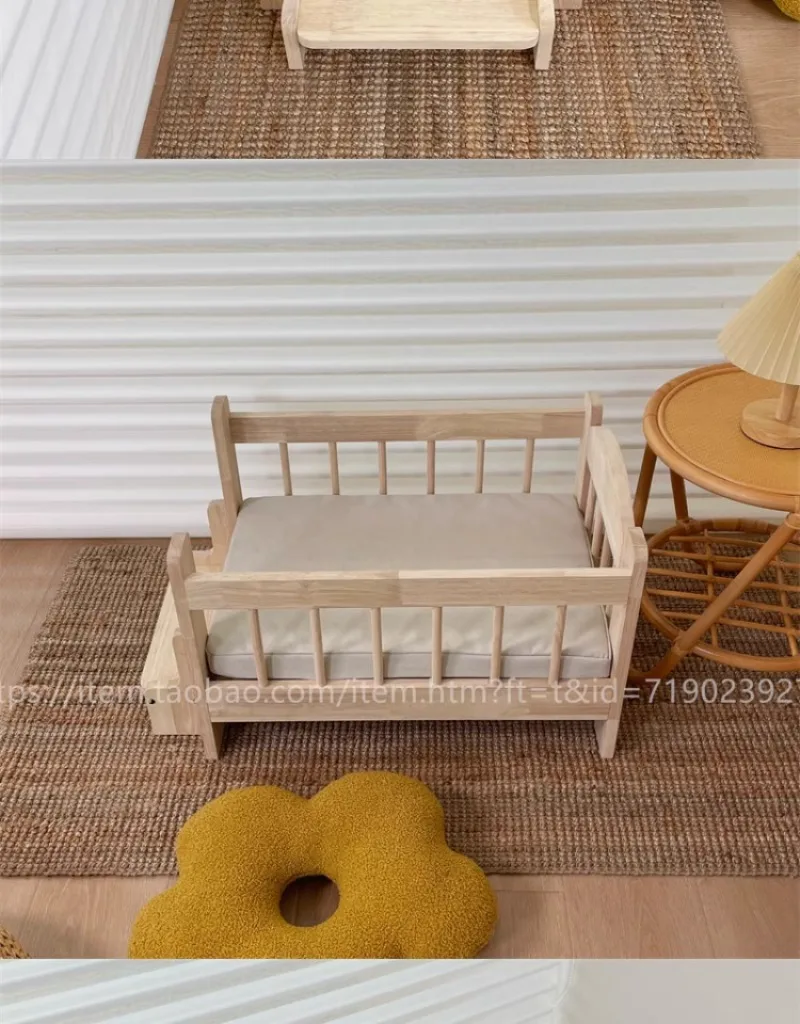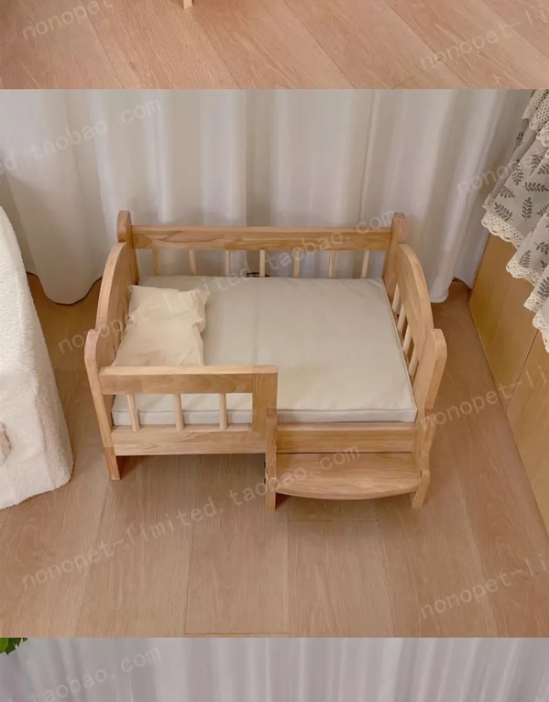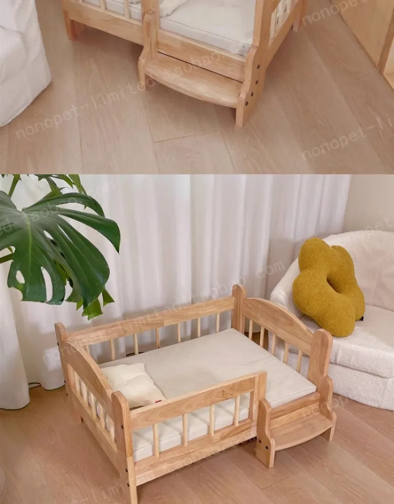 Cama para mascotas, valla de madera maciza a prueba de humedad, nido para perros y gatos, almohadilla de lavado desmontable de lona, suministros de muebles para mascotas, camas de decoración