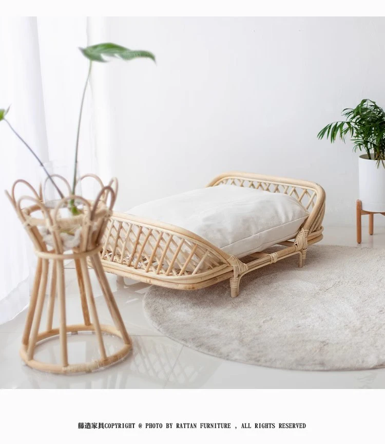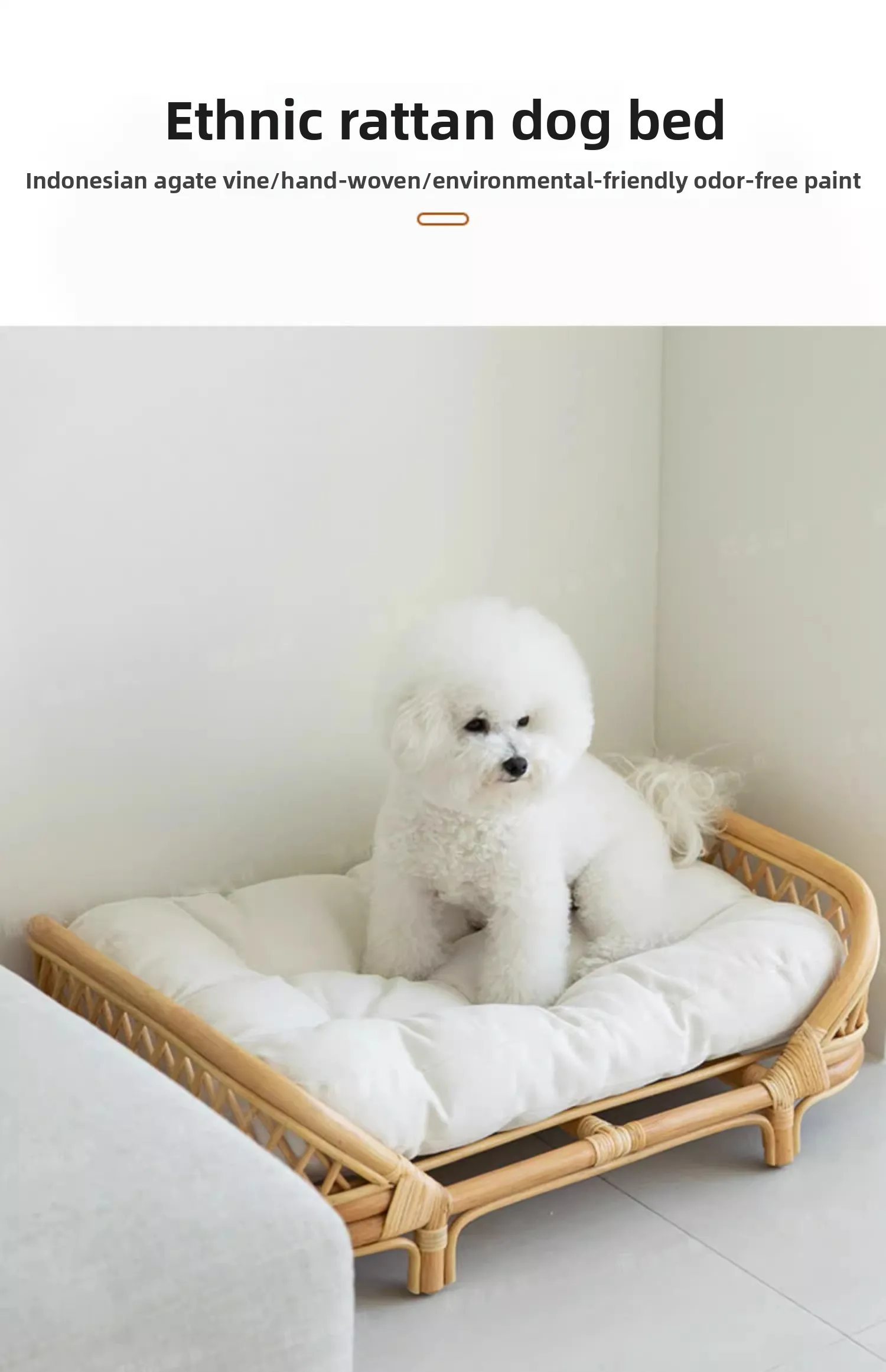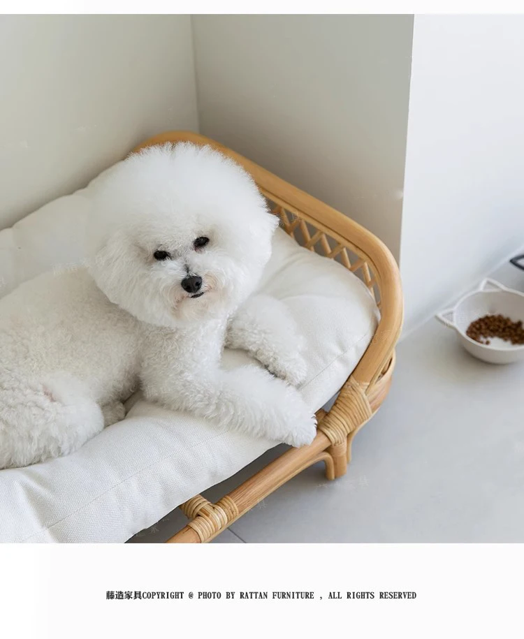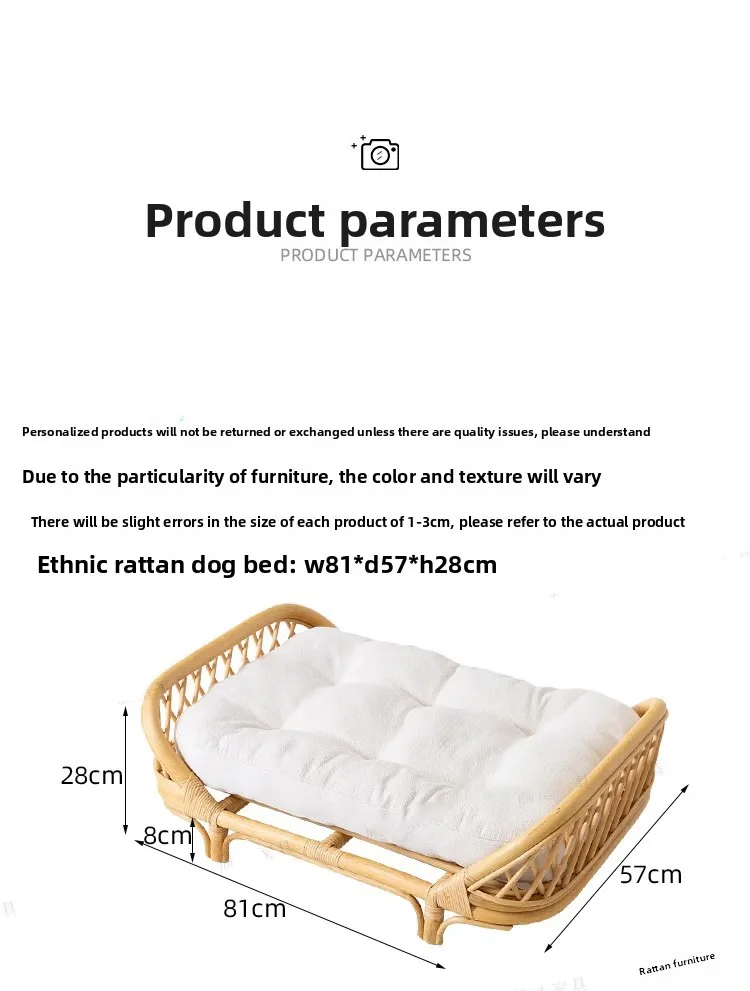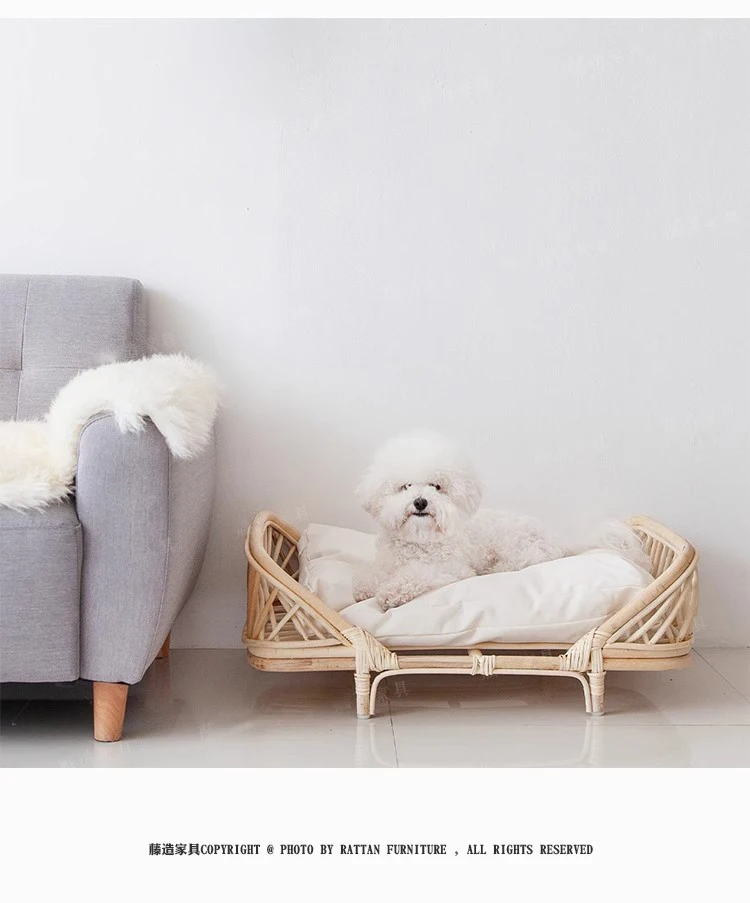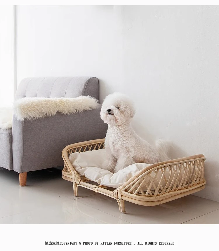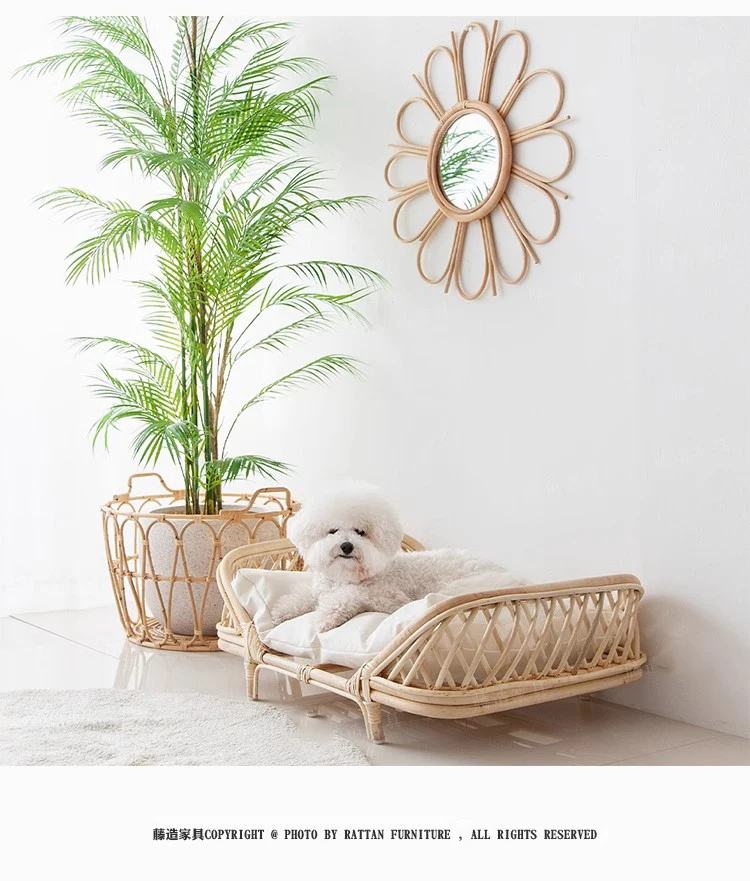 Cama de mimbre para perros, perrera de mimbre para perros medianos y pequeños, camas para perros de invierno y verano, nido para gatos tejido de mimbre Universal, suministros para cama para mascotas
