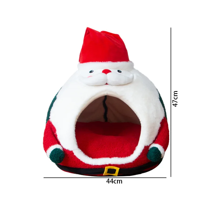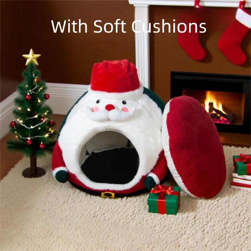 Cama navideña para mascotas, casa de Papá Noel, cálida felpa, calmante, nido para perros y gatos, almohadilla para perrera de invierno para gatos de interior, refugio acogedor