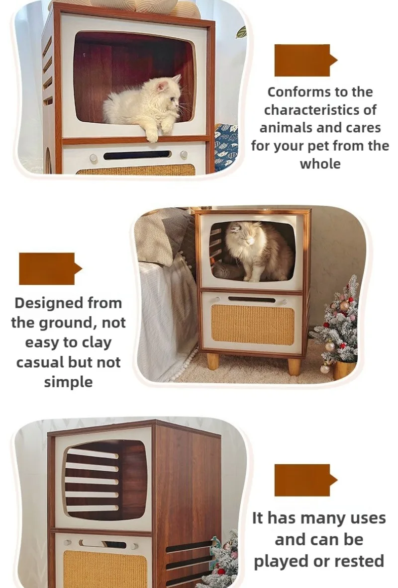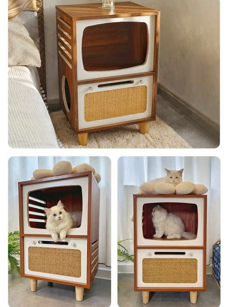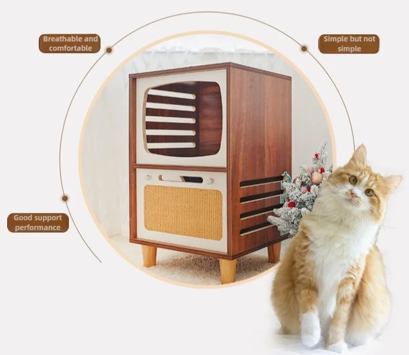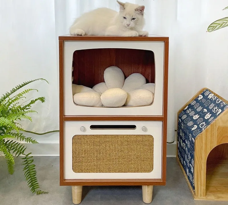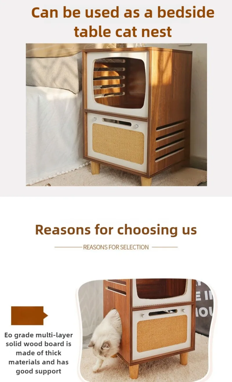 Cama nido de gato Retro de doble capa, mesita de noche, dormitorio, nido de gato, rascador creativo, ocultando gatos, suministros para anidar mascotas