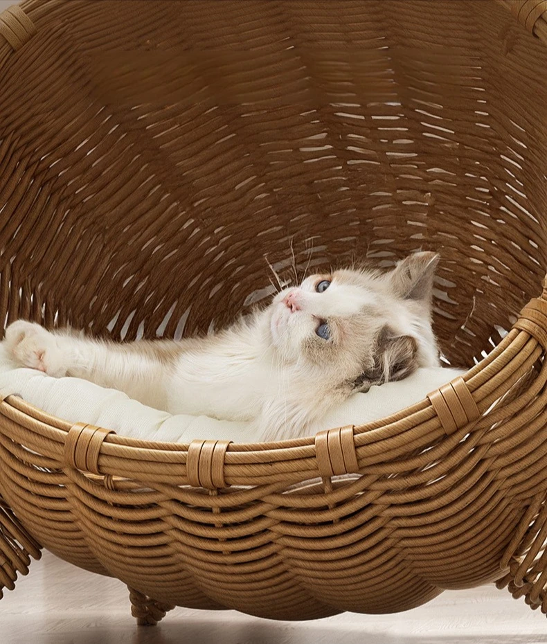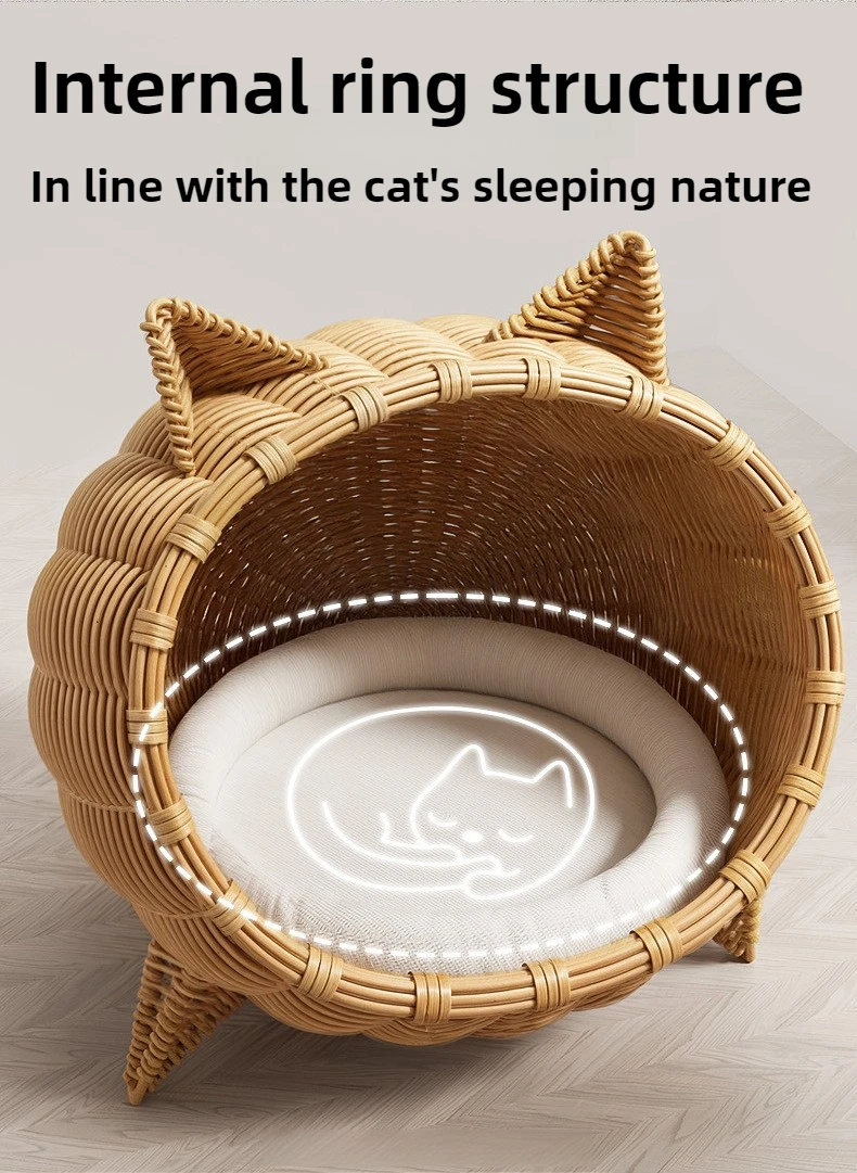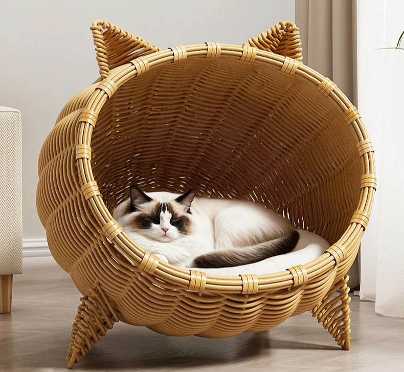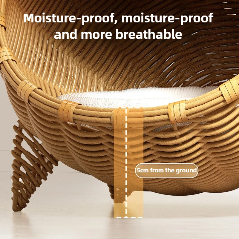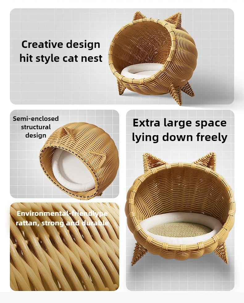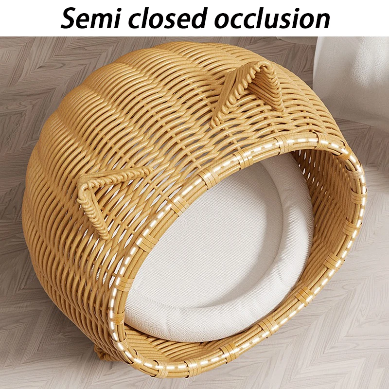 Cama nido para gatos tejida de vid, casa escondida, anidación para gatos semicerrada, para dormir, a prueba de humedad, transpirable, suministros para gatitos