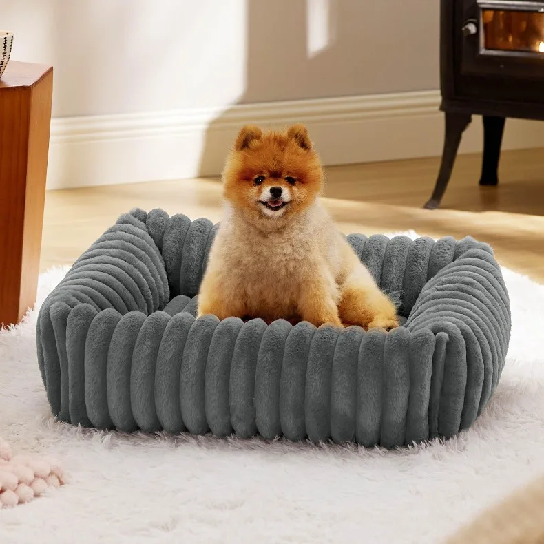 Cama para perro ondulada de felpa, cama para dormir suave y esponjosa, cómoda y cálida, camas para gatos, extraíble, lavable, para todas las estaciones, para perros pequeños y medianos