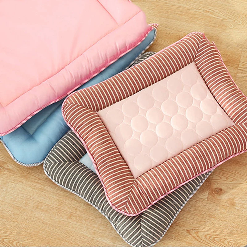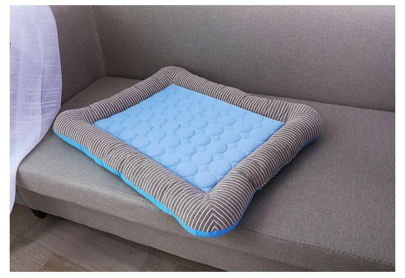 1.Hecho de seda helada de alta calidad o tapete de red, hace que su mascota sea transpirable y fresca en verano.