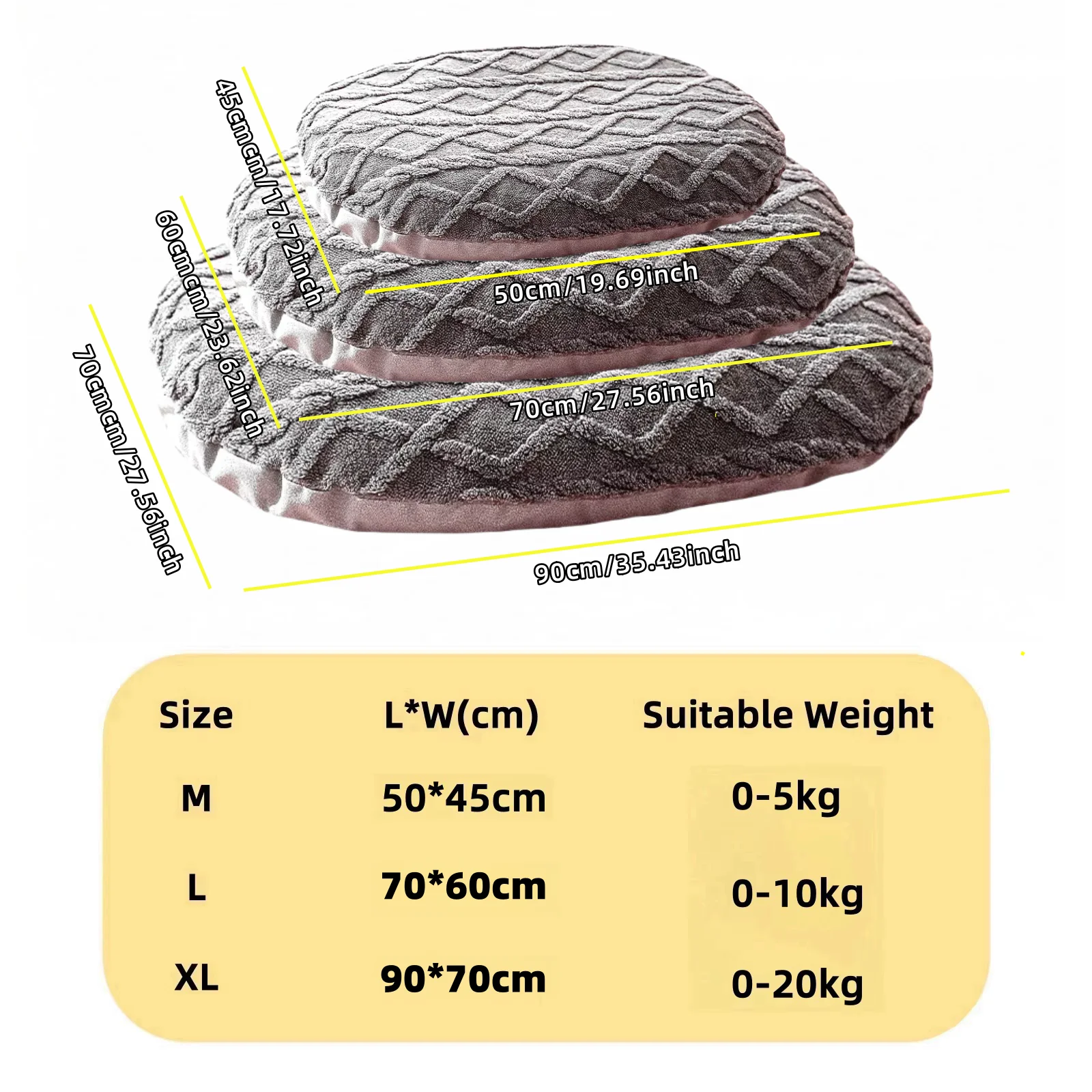 XL: 90 * 70 cm=35,43 * 27,56 pulgadas, es adecuado para perros y gatos medianos de 0 a 20 kg