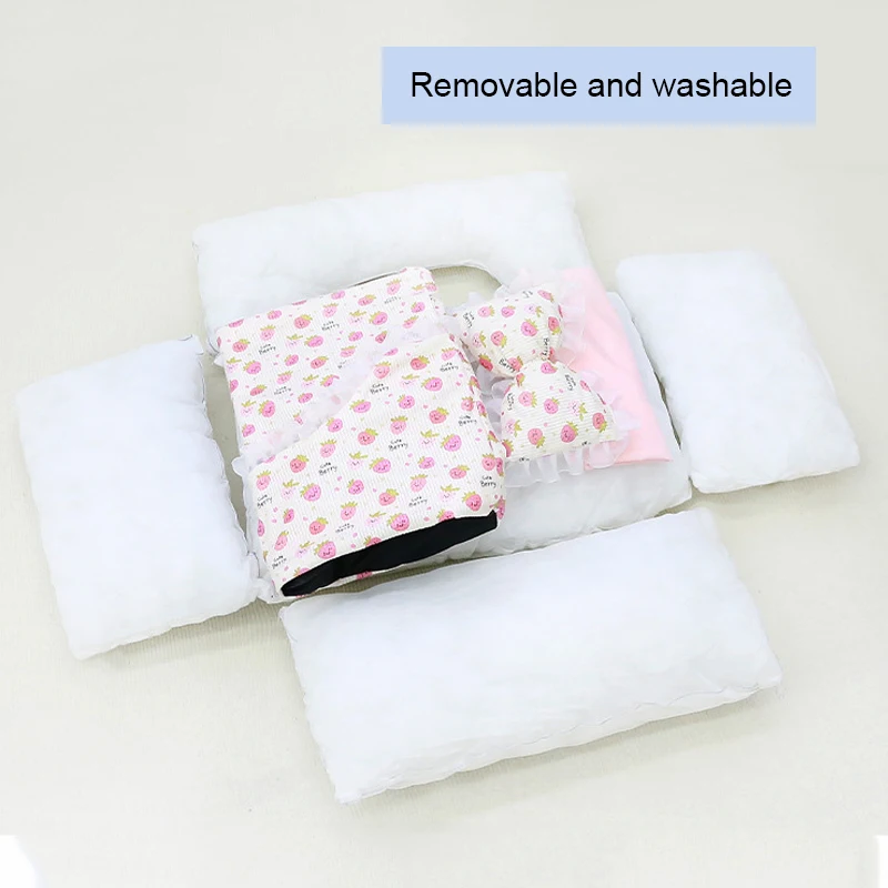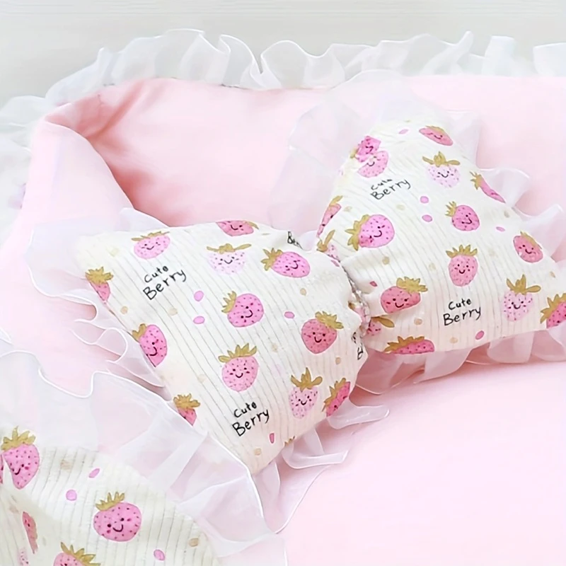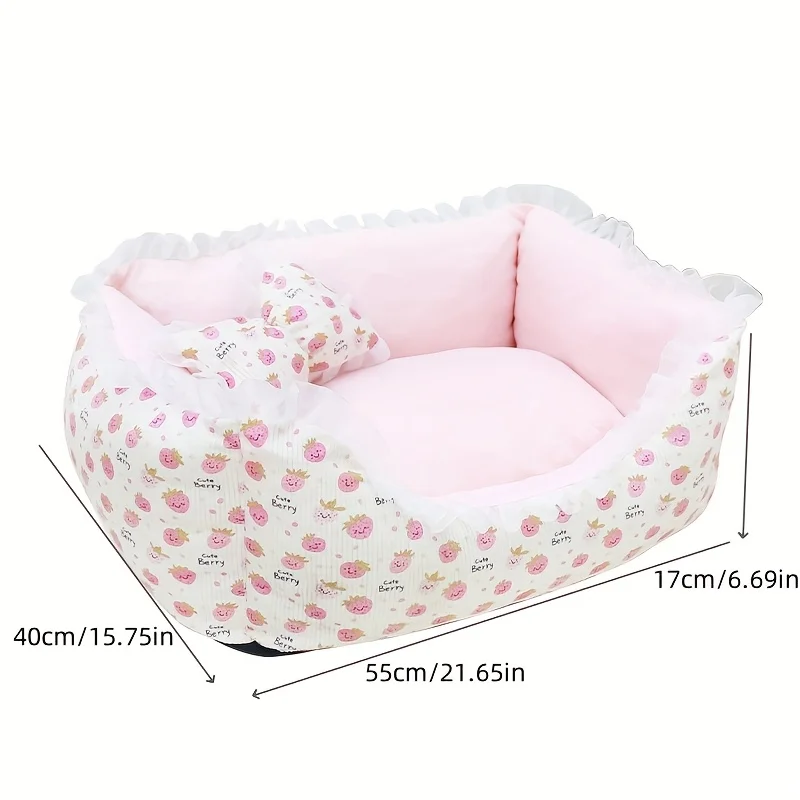 Cama para perros lavable desmontable de invierno para perros pequeños y medianos - Colchón acogedor para mascotas con volantes rosas Muebles para mascotas de interior