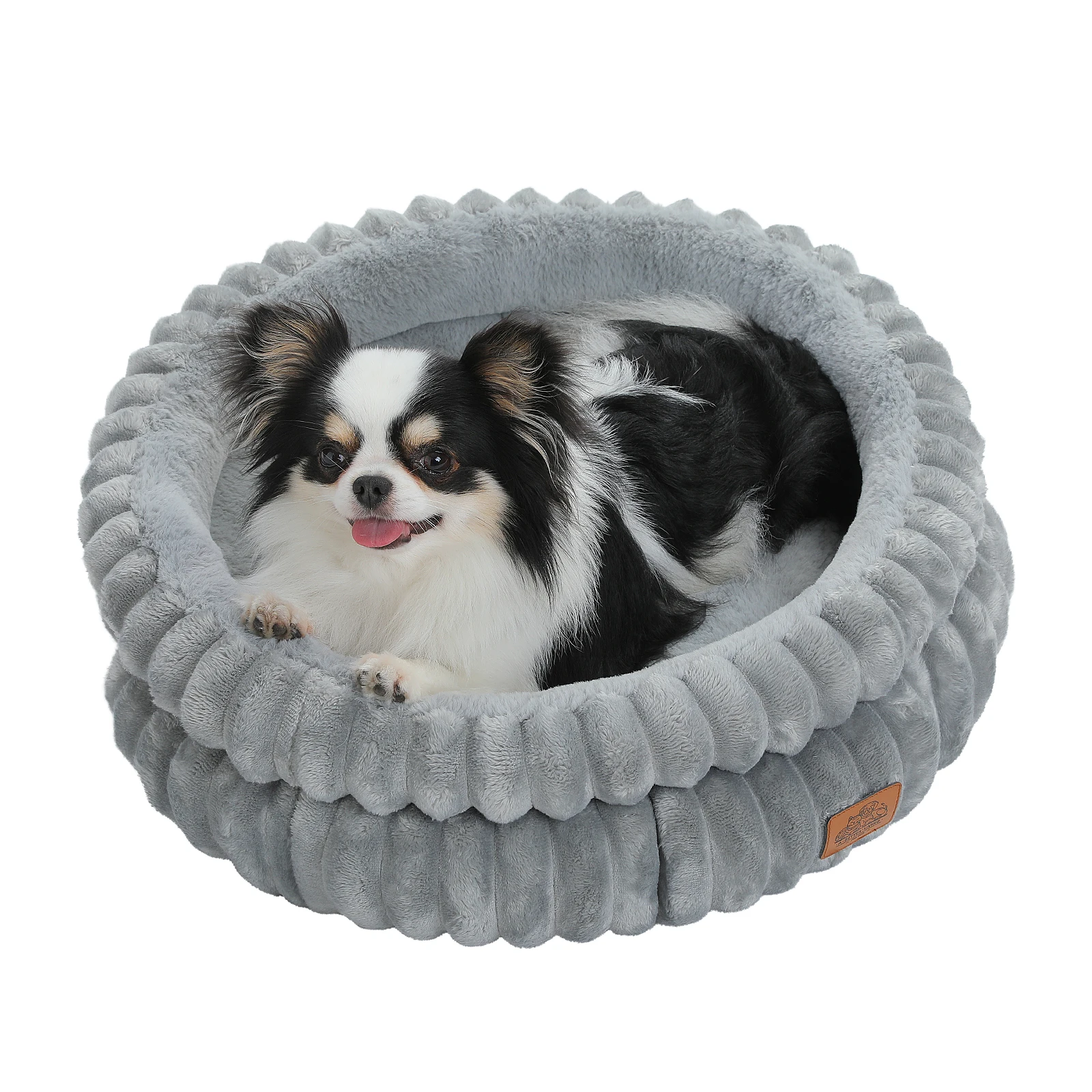 Cómodo y de apoyo:Esta cama para perros está diseñada para brindar la máxima comodidad y apoyo a su amigo peludo.El diseño circular que se adapta al cuerpo del perro, ofreciendo un lugar de descanso acogedor y de apoyo.