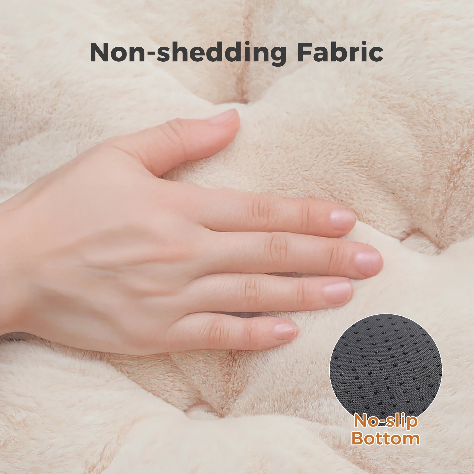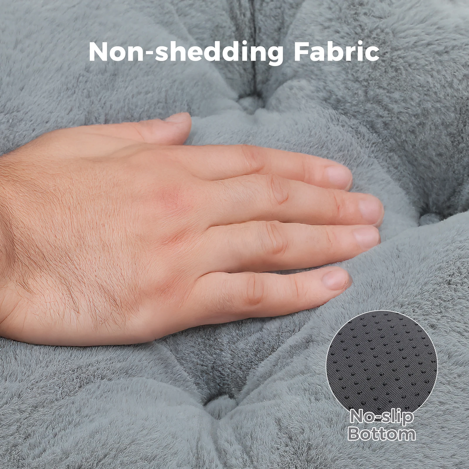 Parte inferior antideslizante:La parte inferior de la cama presenta un material antideslizante que ayuda a mantenerla en su lugar sobre diversas superficies.Esto evita que la cama se deslice, asegurando que su perro tenga un lugar estable y seguro para descansar.