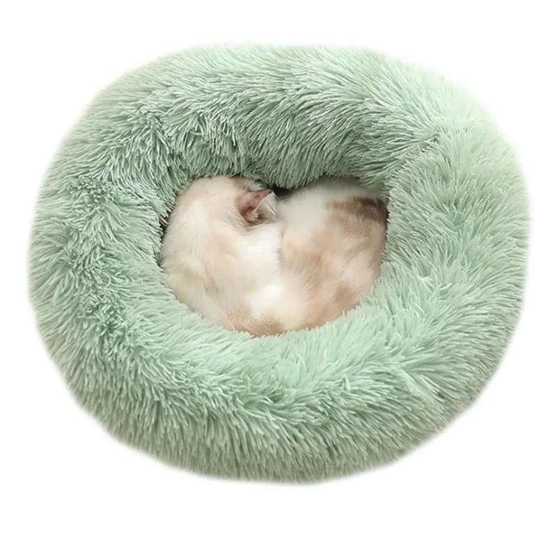 Perrera de arena para gatos, cama larga de felpa suave para mascotas, perrera redonda para perros, nido para gatos, cama cálida para dormir en invierno, cojín para cachorros, alfombrilla, suministros para gatos