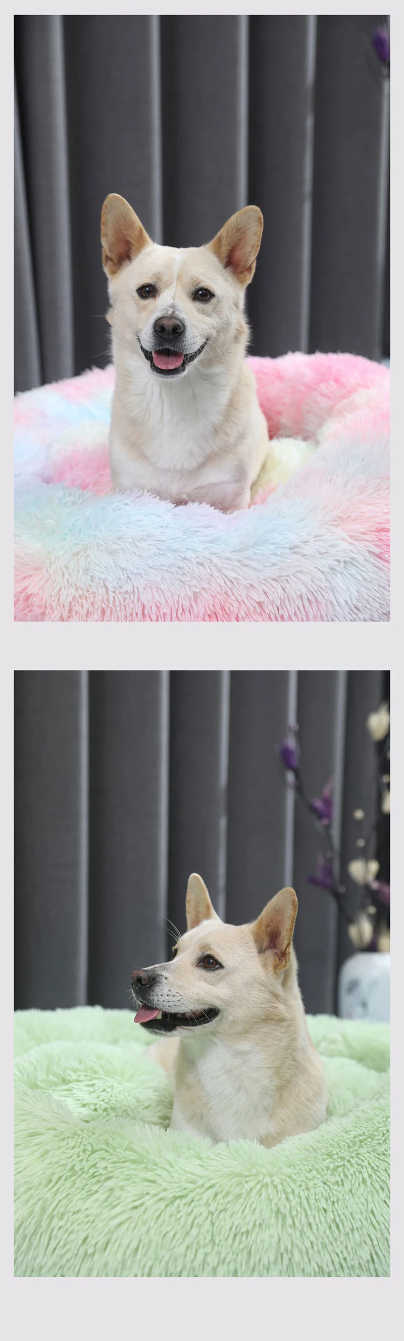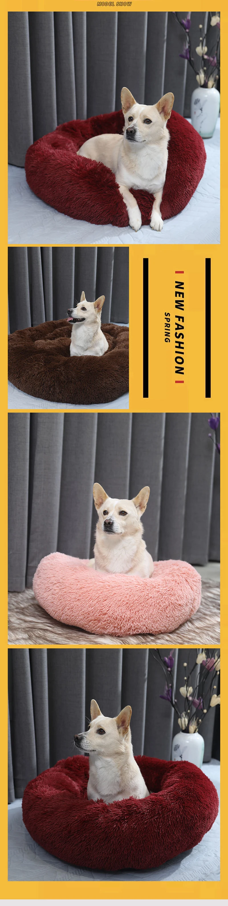 Cama redonda lavable para mascotas, sofá largo de felpa para perros pequeños, Chihuahua, Yorkshire, Invierno