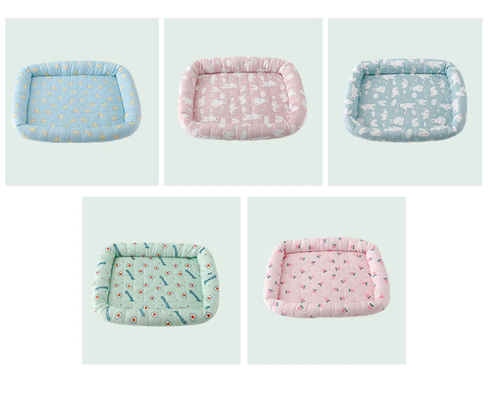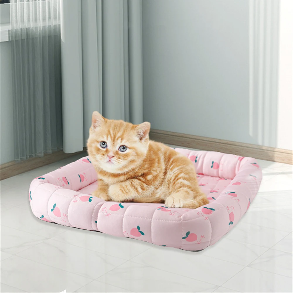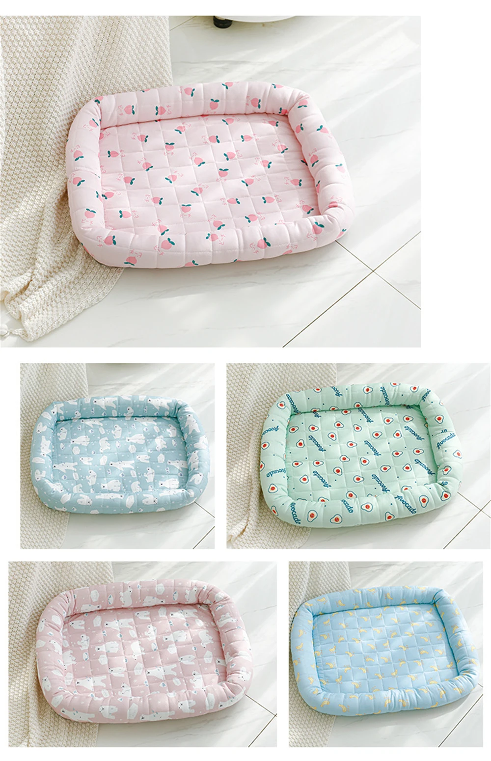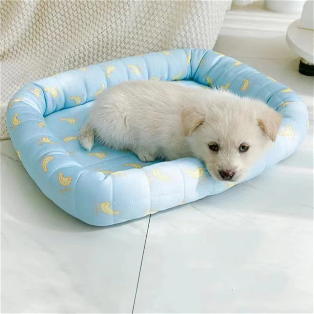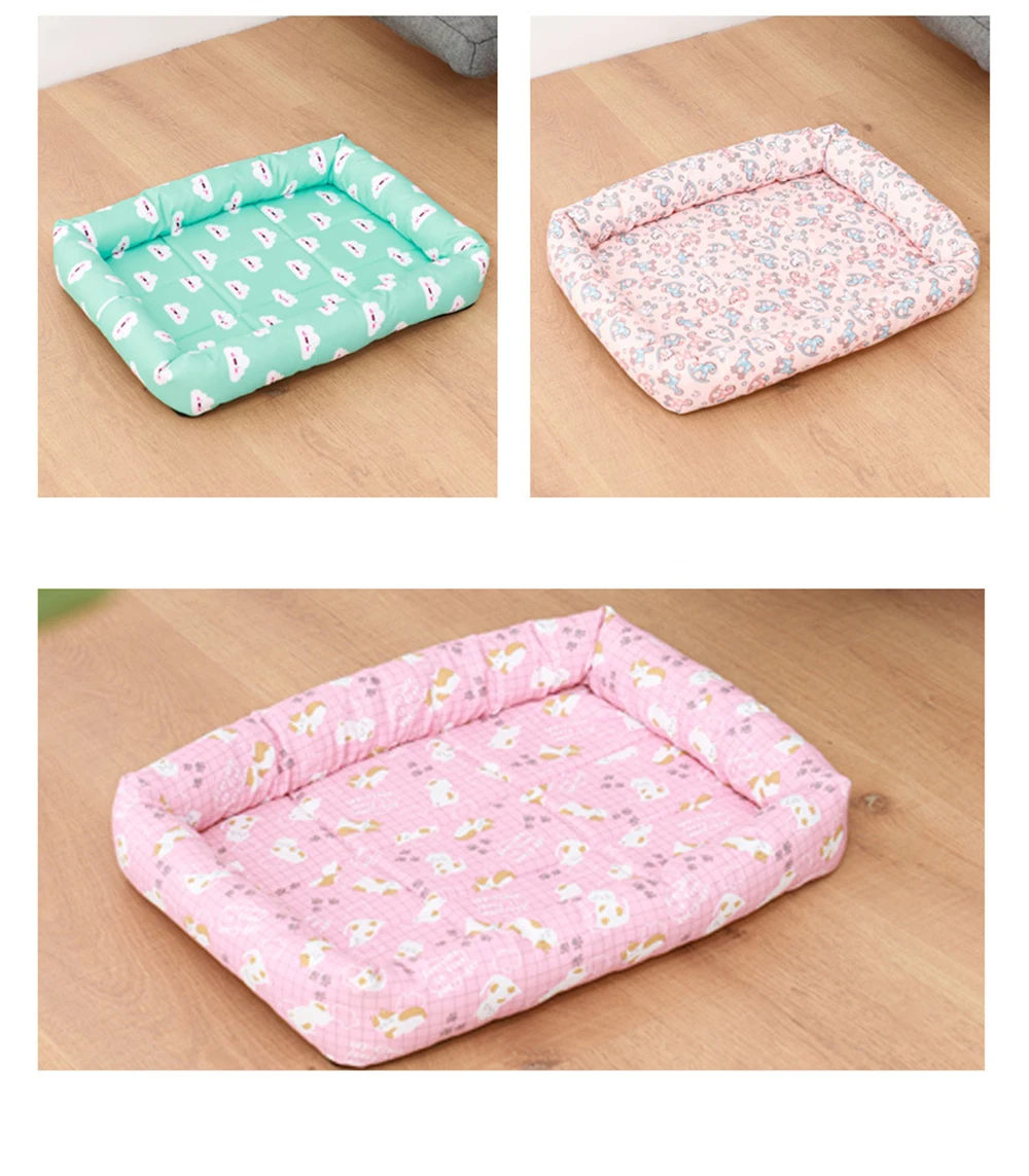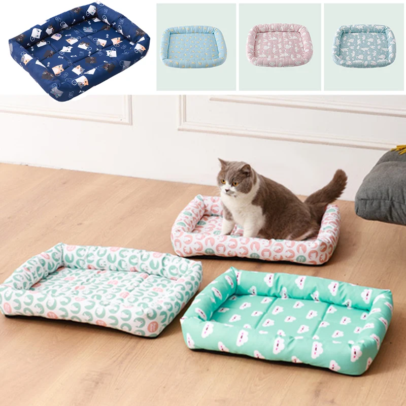 Cama de seda fría para perro, cojín de sofá con estampado cuadrado, suave, nido de dormir refrescante, perrera para mascotas, Gato y cachorro, Verano