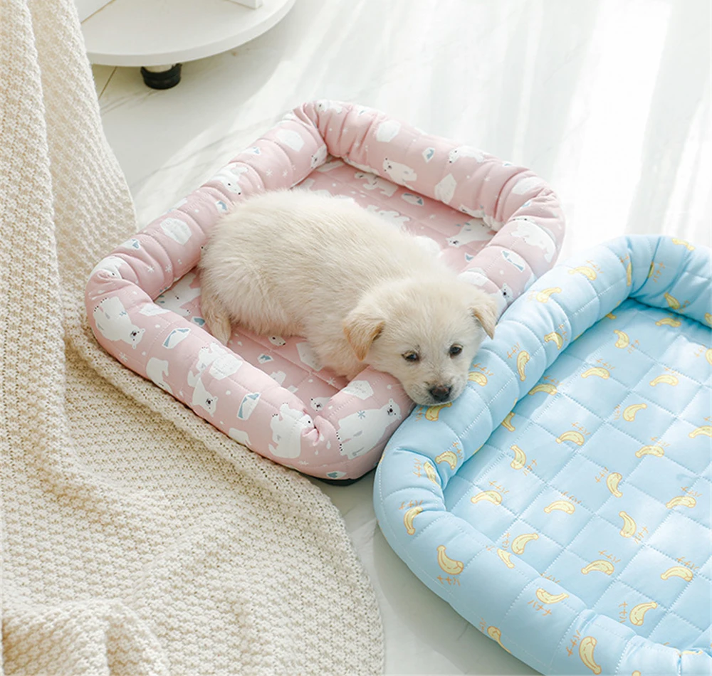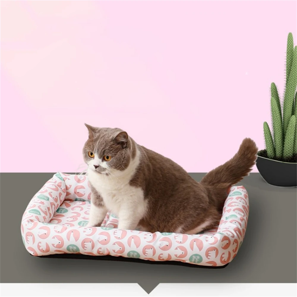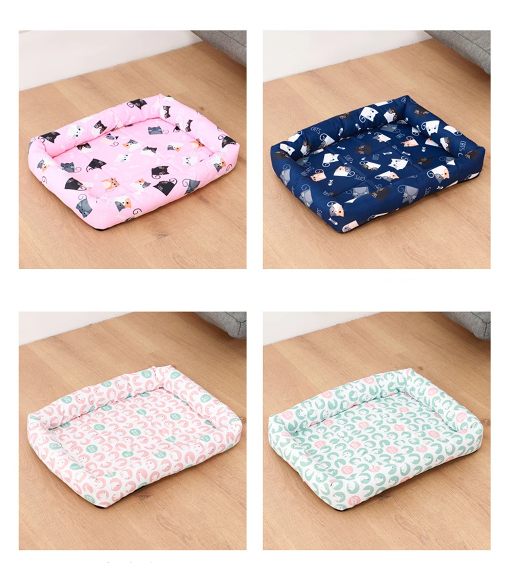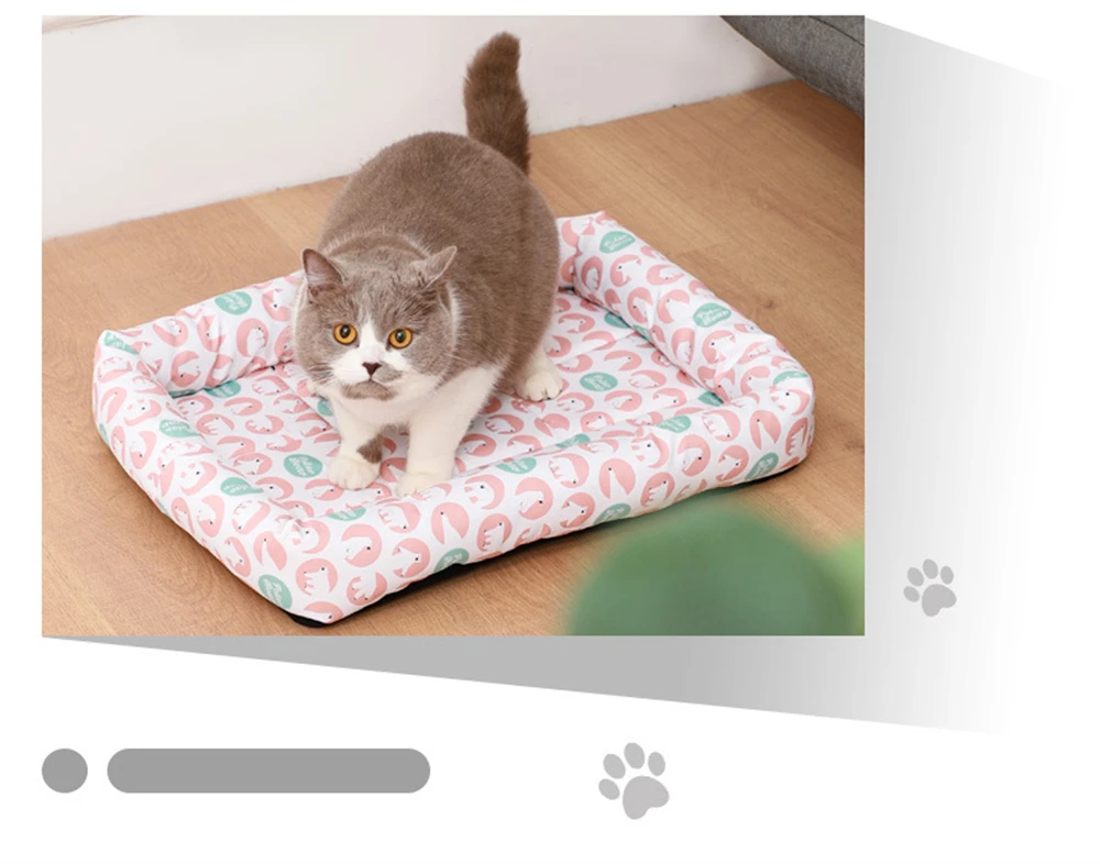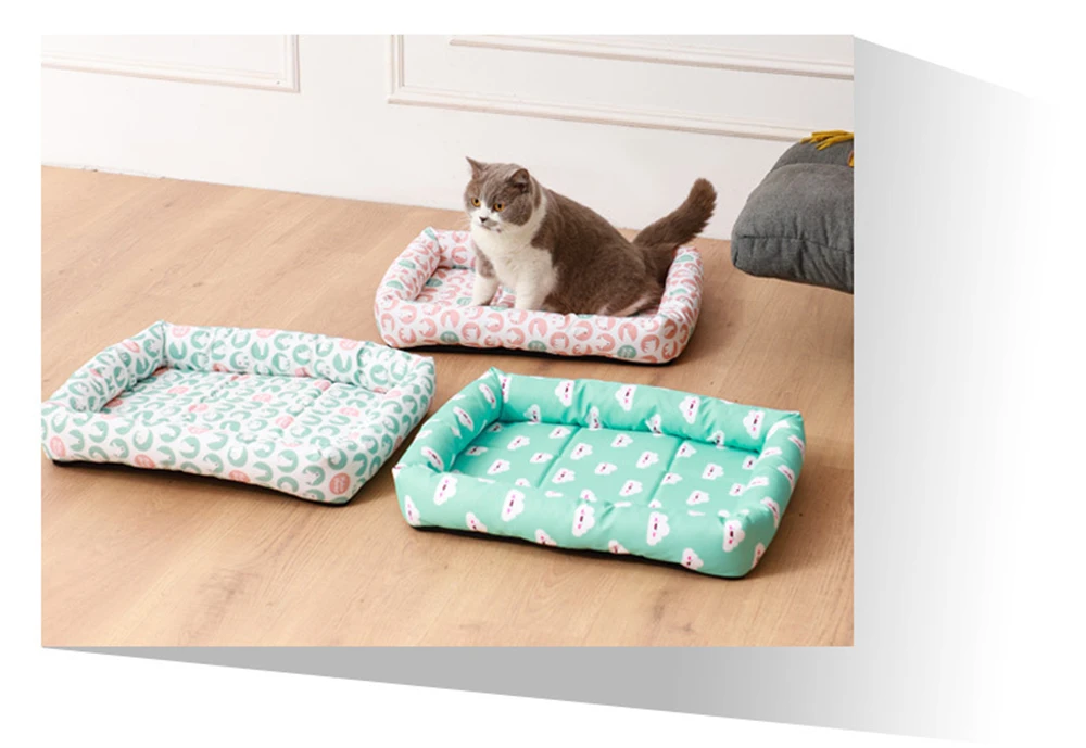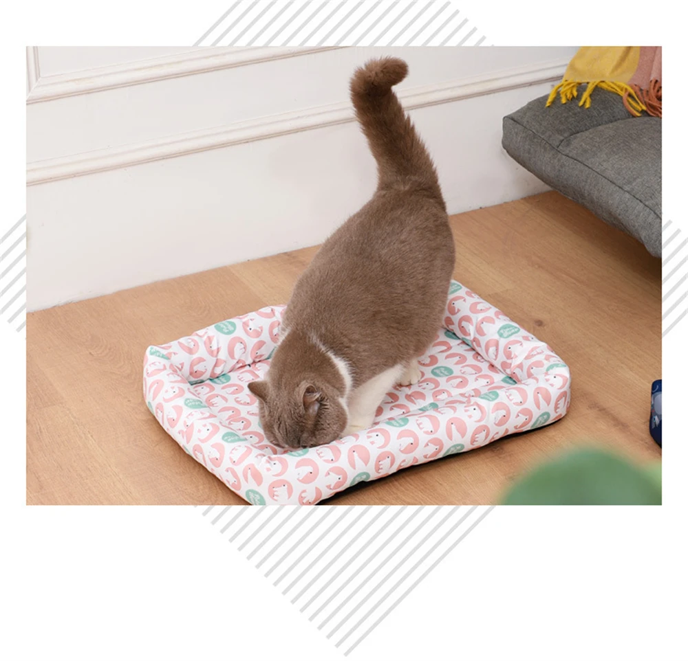 Cama de seda fría para perro, cojín de sofá con estampado cuadrado, suave, nido de dormir refrescante, perrera para mascotas, Gato y cachorro, Verano