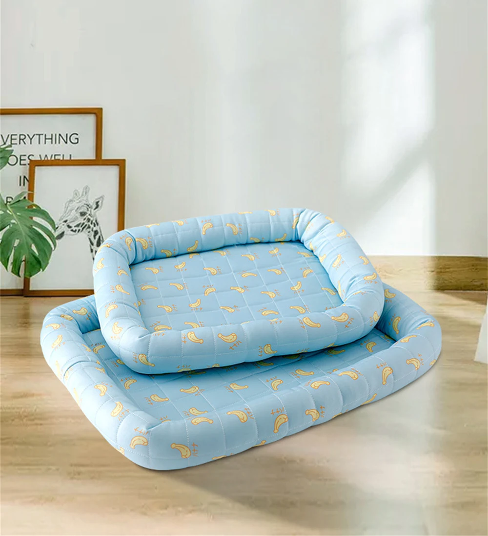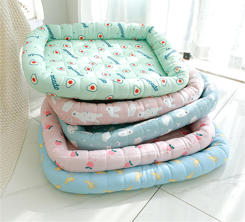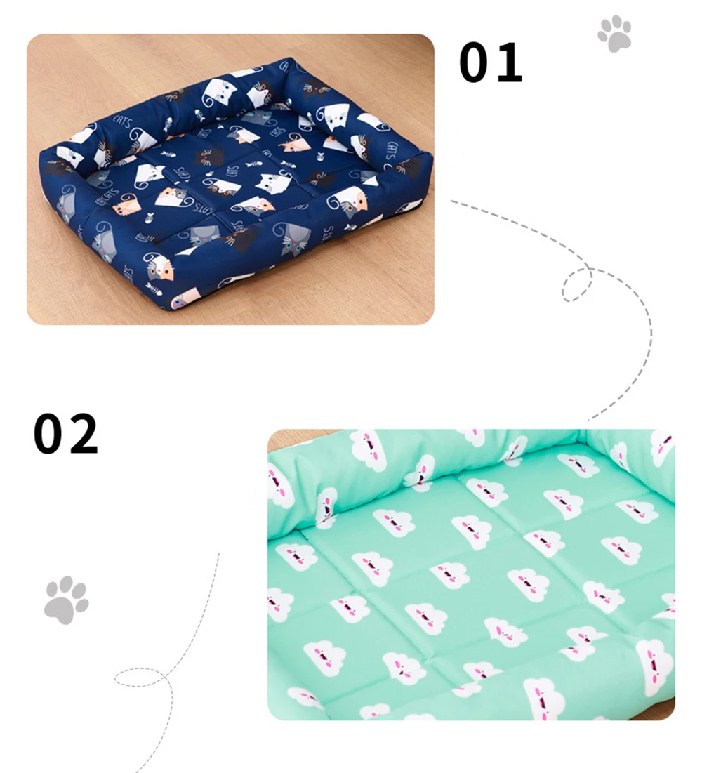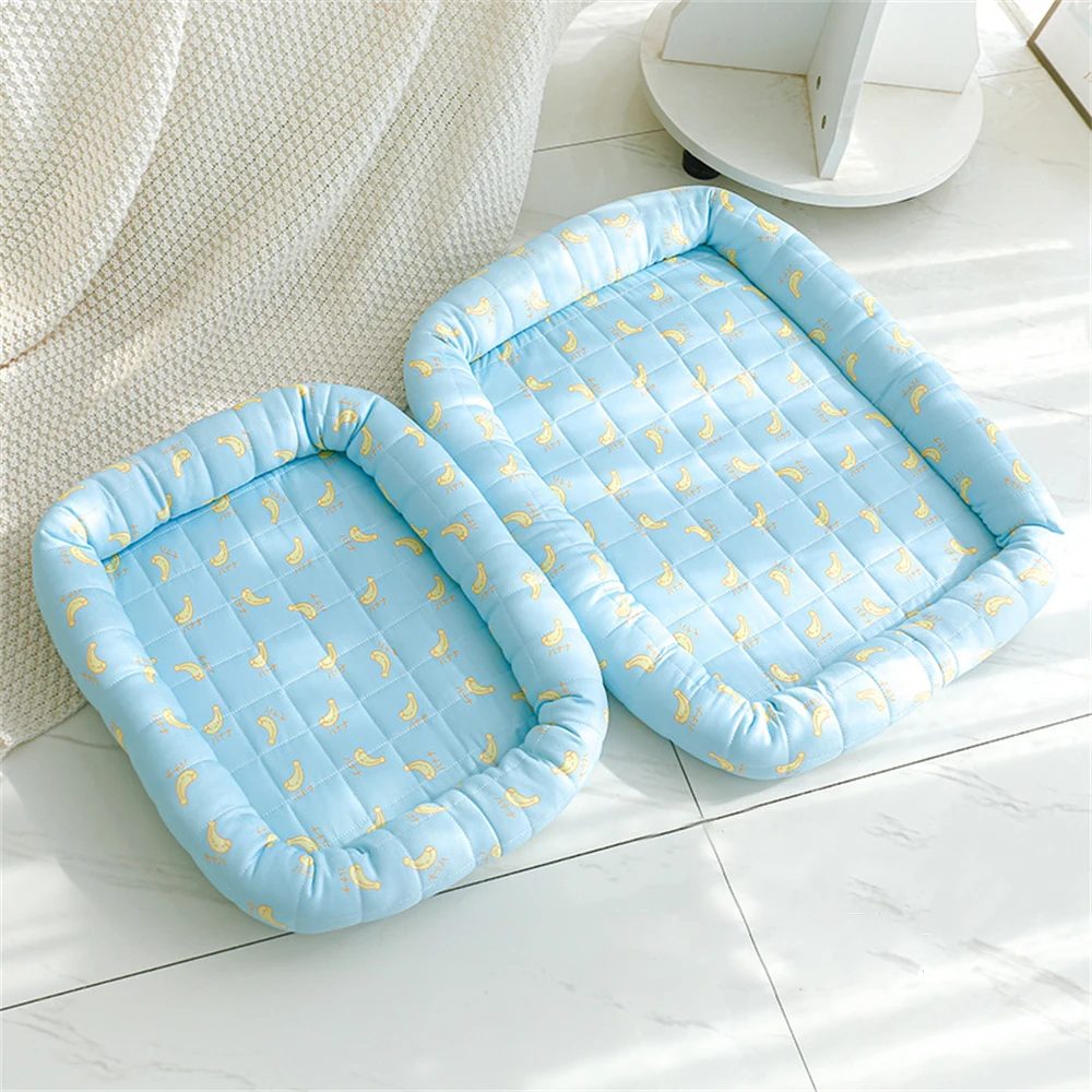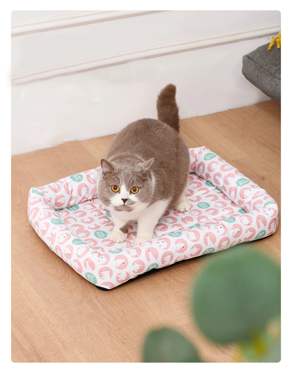 Cama de seda fría para perro, cojín de sofá con estampado cuadrado, suave, nido de dormir refrescante, perrera para mascotas, Gato y cachorro, Verano