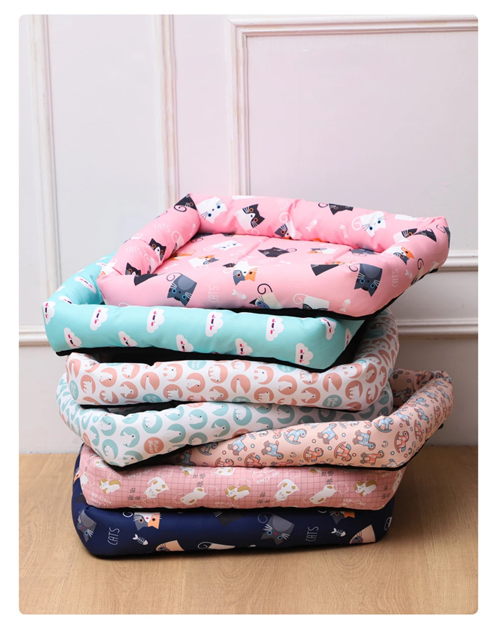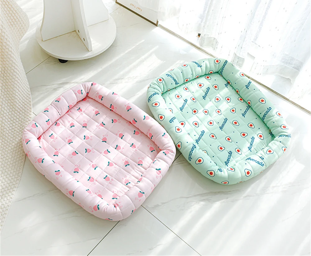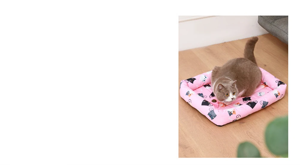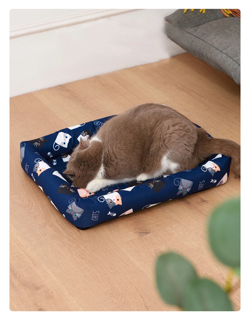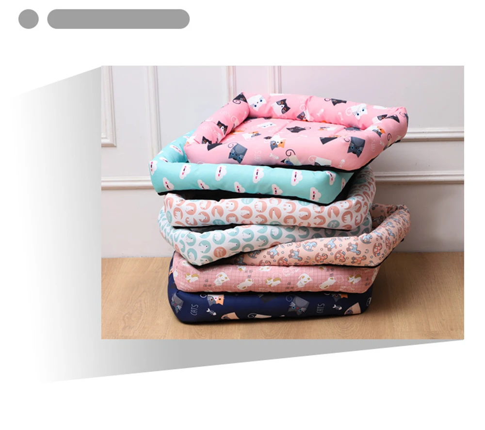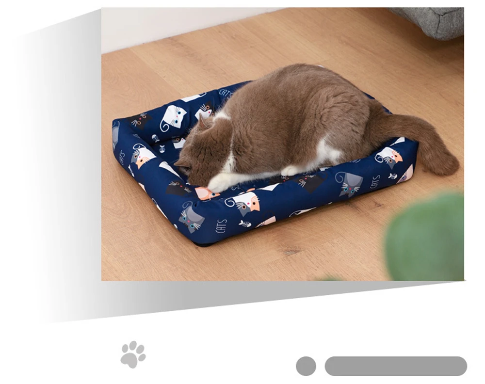 Cama de seda fría para perro, cojín de sofá con estampado cuadrado, suave, nido de dormir refrescante, perrera para mascotas, Gato y cachorro, Verano