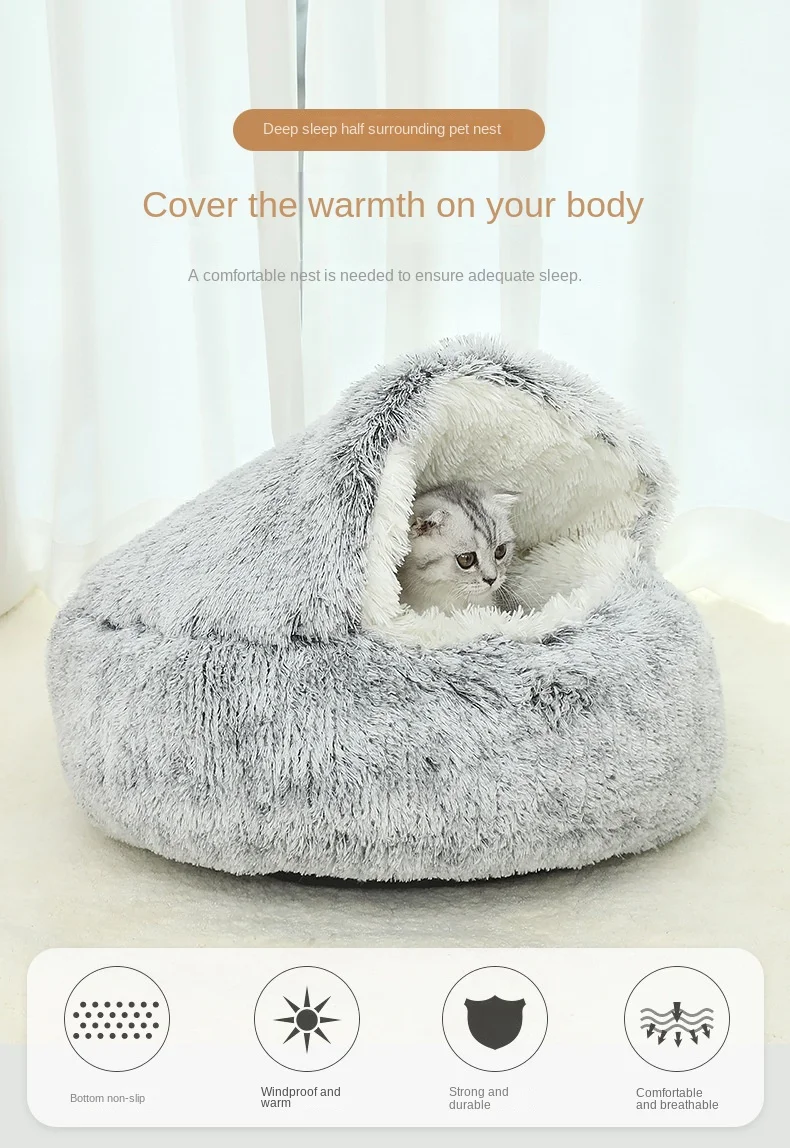 Cama semicerrada para mascotas, nido grande en forma de concha, cálido y resistente a las manchas, fácil de limpiar, suministros para mascotas, Invierno