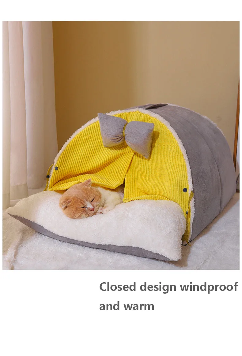 Cama semicerrada para Perrera de gato, colchón decorativo bonito de algodón PP, cálido y transpirable, para todas las estaciones
