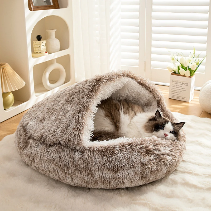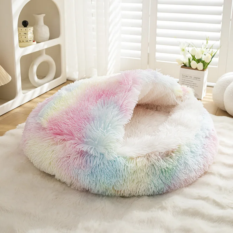 3.Utilice formas en que la entrada se puede abrir para facilitar el acceso.Una mascota peluda puede descansar bien allí con la cálida y acogedora funda de felpa.O puedes doblarla como una cama normal para mascotas sin la funda cálida.