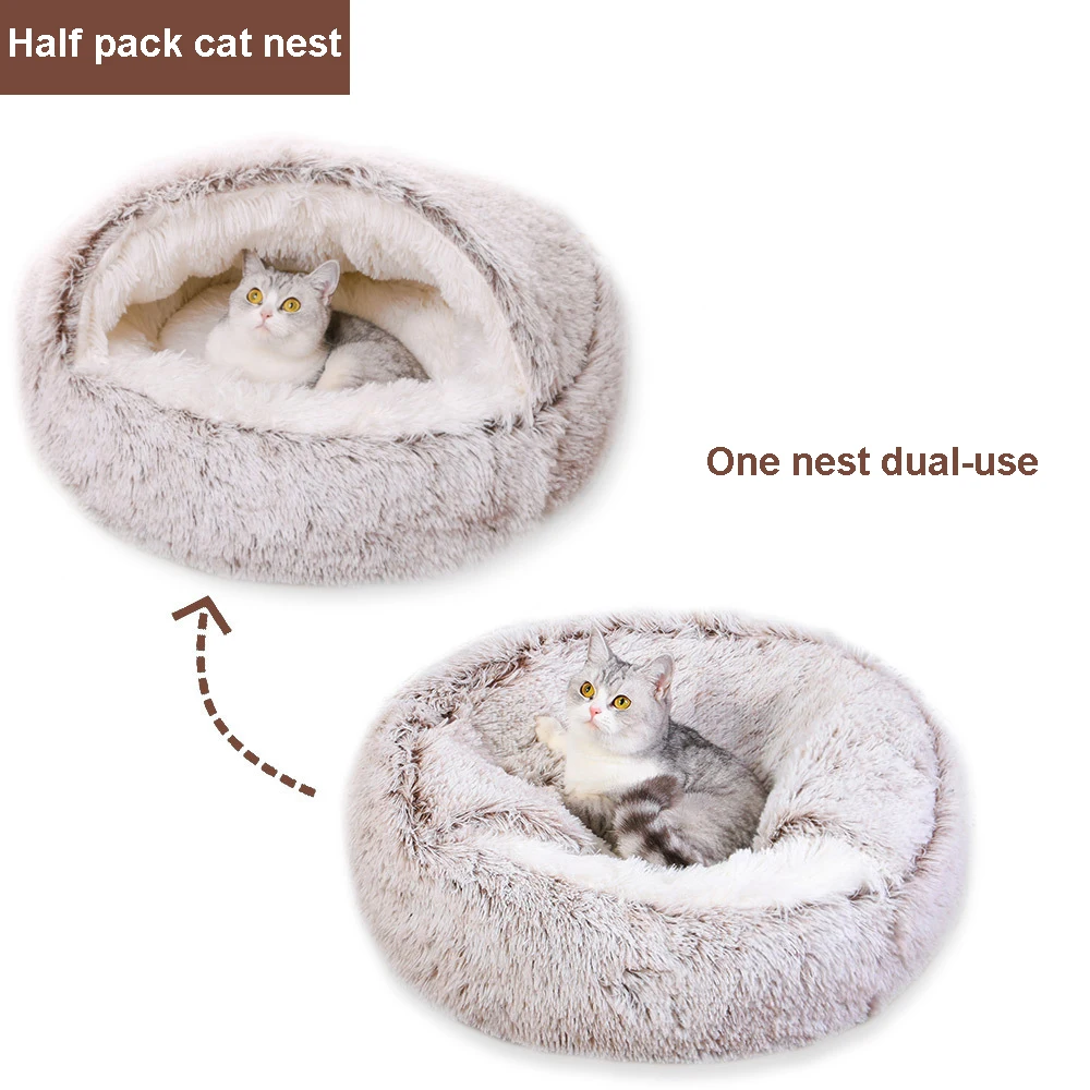 Cama de felpa suave para gatos con funda, colchón para mascotas, cama redonda para gatos, cojín cálido para invierno, cama para dormir para perros pequeños, nido para gatitos