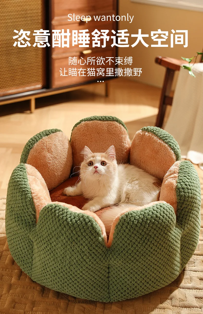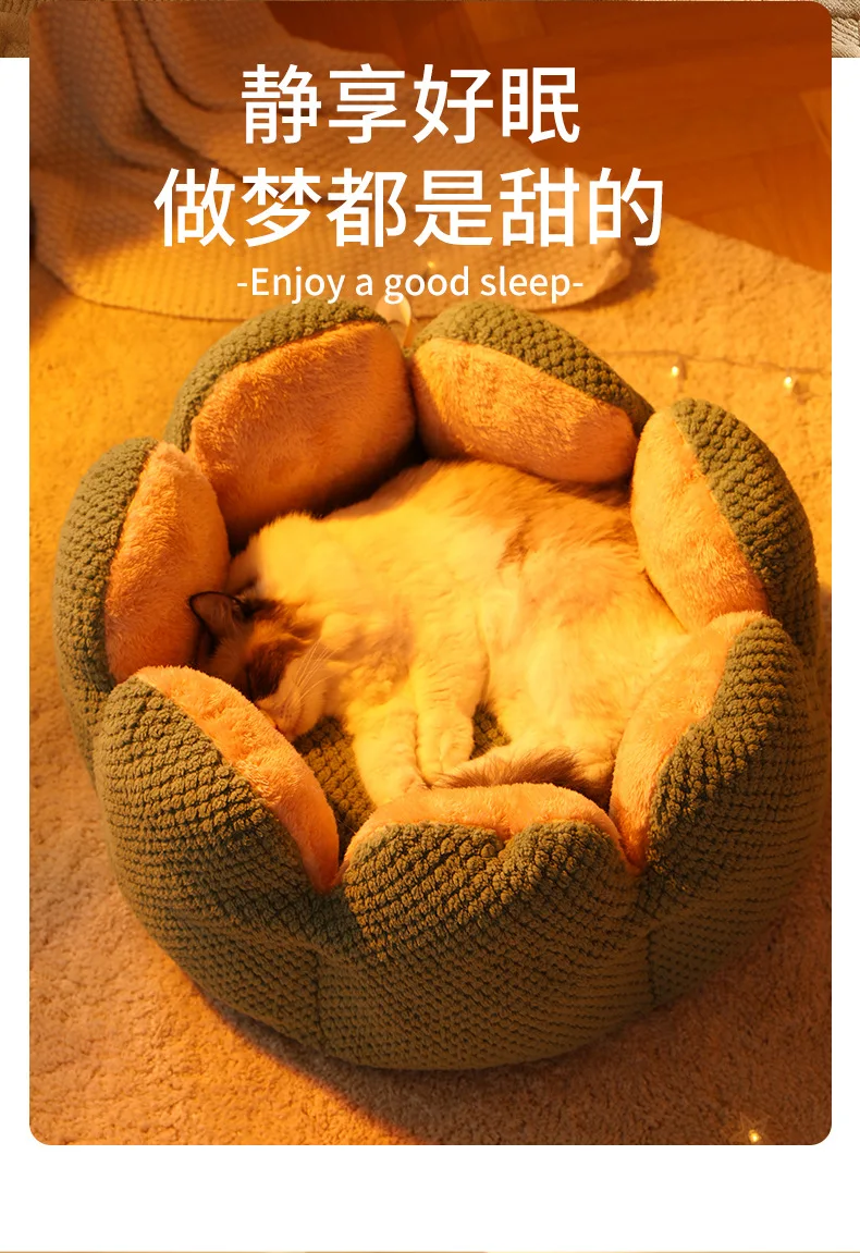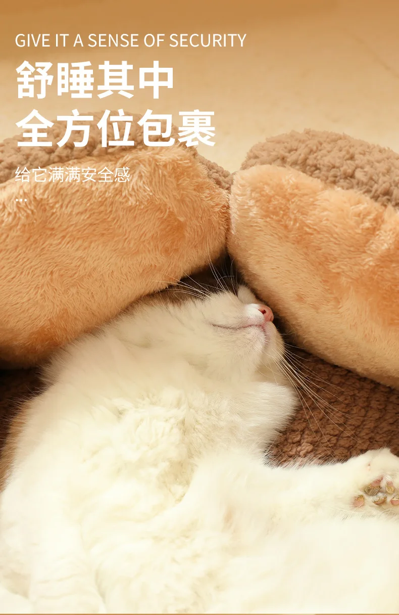 Soft Cat Bed : The outside of this cat bed is brown artificial short suede, and the inside is beige artificial plush. The material is light and soft, giving the cat a feeling of lying on the clouds, providing the best for furry friends comfort and warmth.