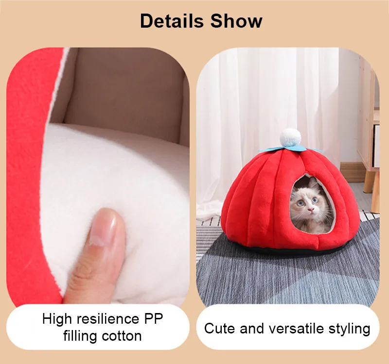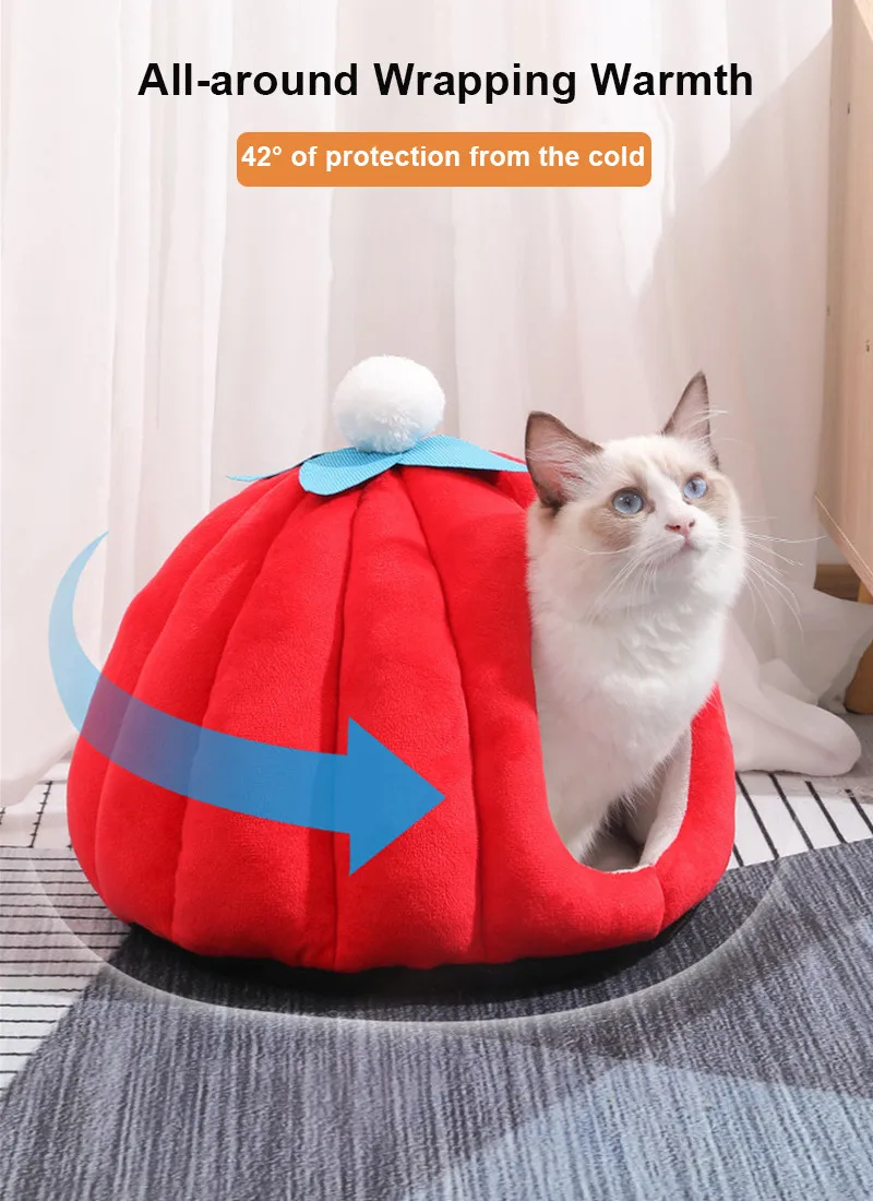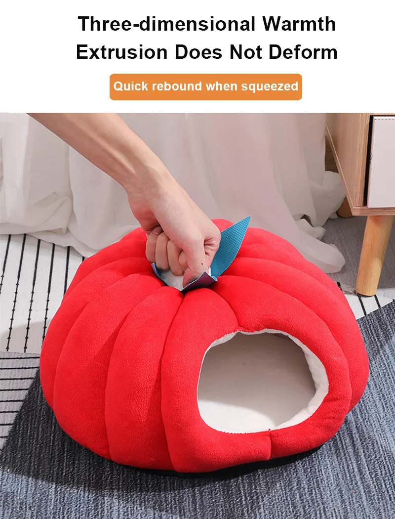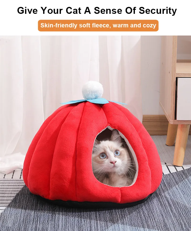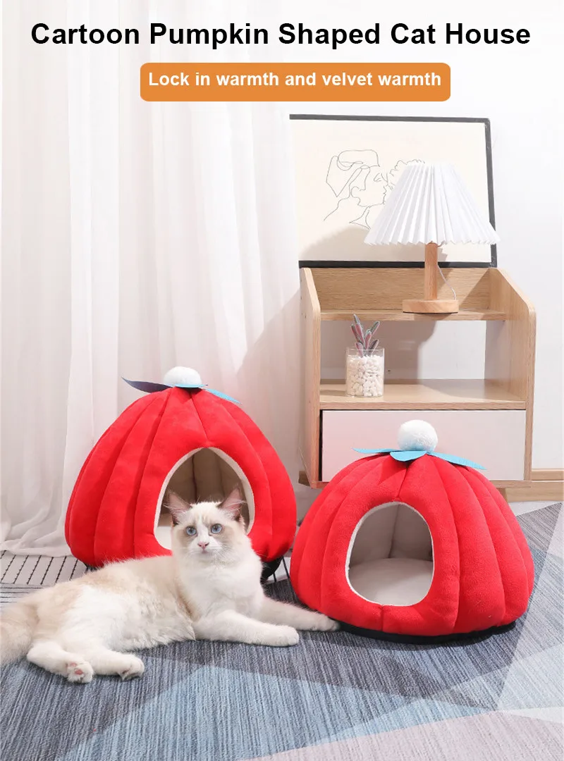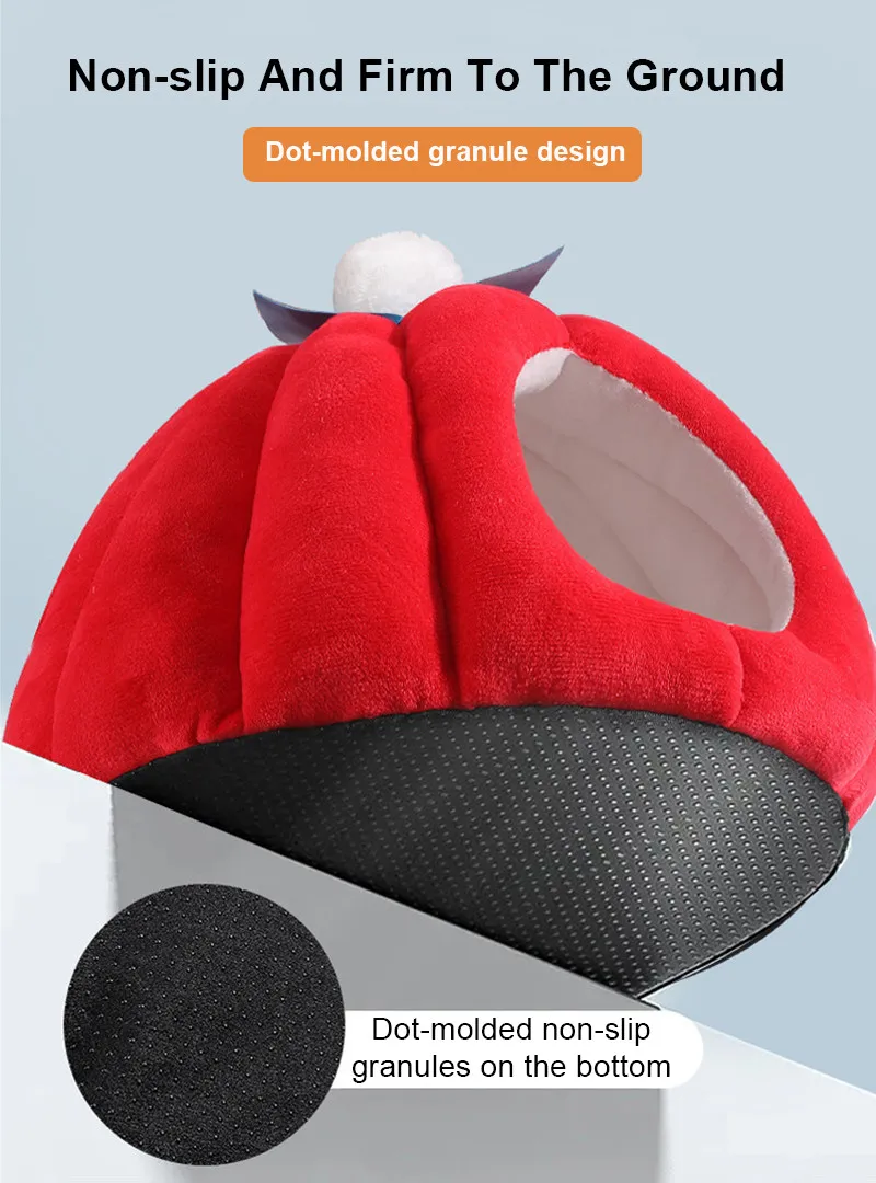 Cama suave y cálida para gato, casa antideslizante con forma de calabaza de dibujos animados, nido interior para mascotas, suministros para mascotas, Invierno