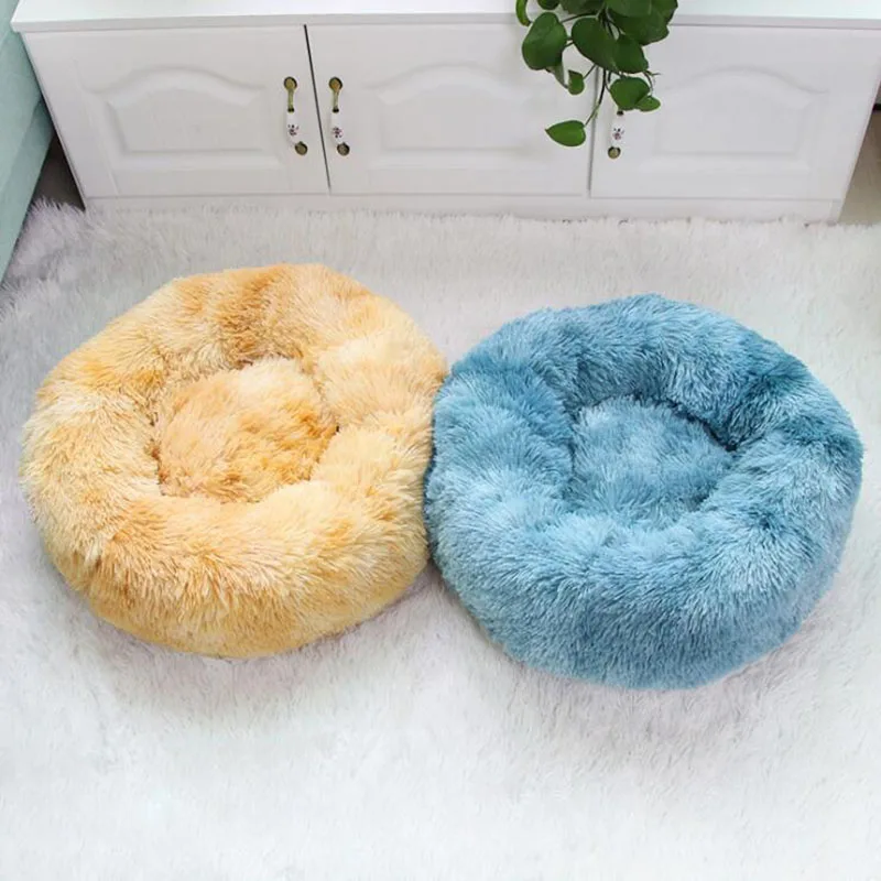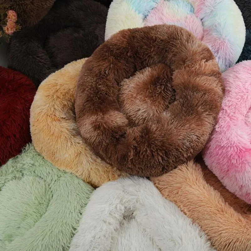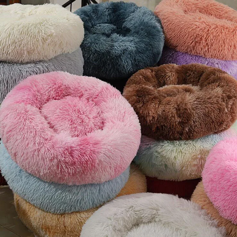 Caseta para arena para gatos, cama larga de felpa suave para mascotas, cama redonda para perros, nido para gatos, cama cálida para dormir para invierno, cojín para cachorros, alfombrilla, suministros para gatos