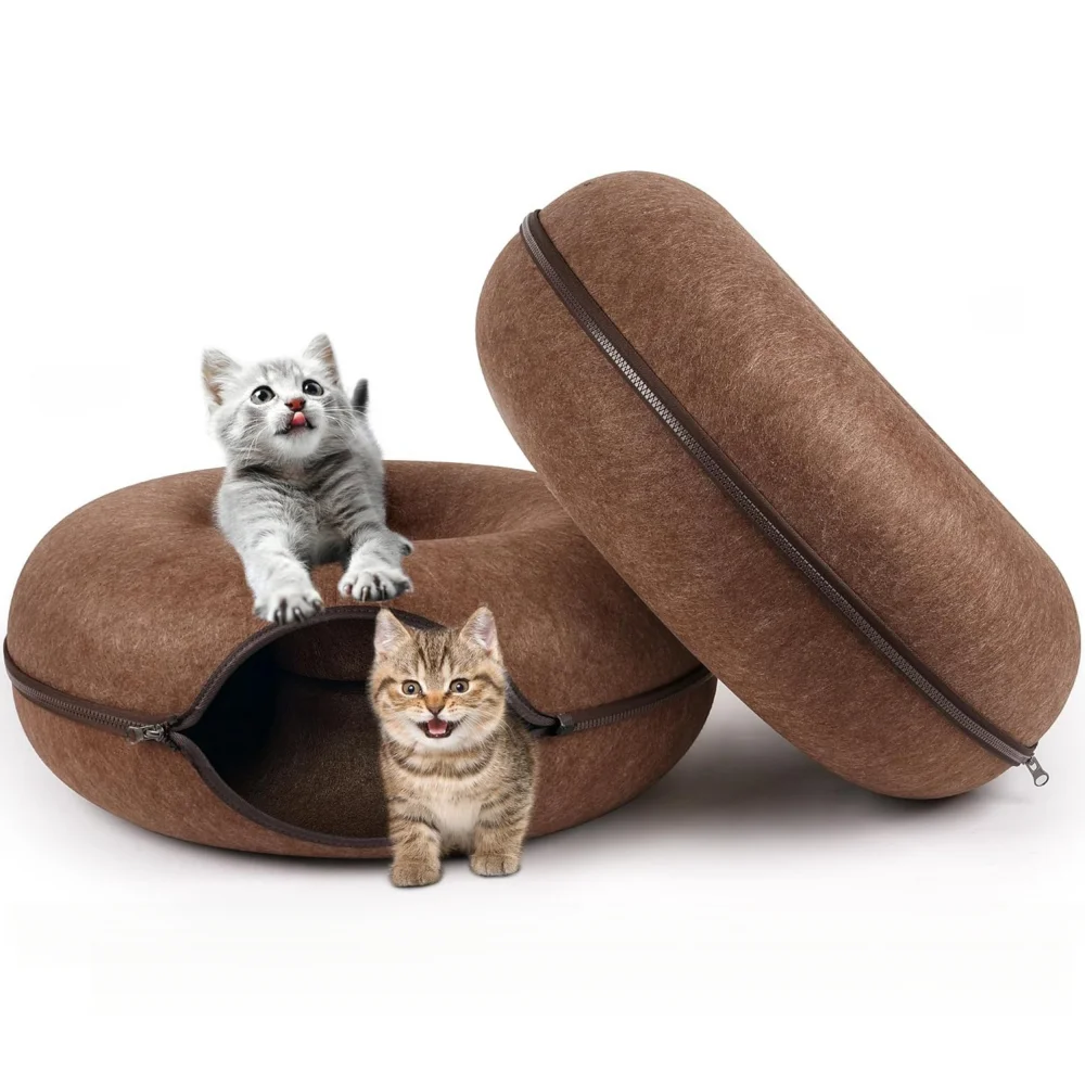 Cama de túnel para gatos grande con radio de 60 cm, parece cartón resistente. Aunque se comprime para el transporte, rápidamente recuperó su forma. Agregé un pequeño cojín en el medio y el gato parece disfrutarlo. Puede abrir la cremallera fácilmente y colocar ambas mitades de la cama una encima de la otra para guardarla cuando no esté en uso, aunque es grande, se puede reducir y almacenar. Hesité comprar la talla más pequeña (como vivo en un pequeño apartamento), pero se siente que habría demasiado pequeña para los gatos adultos. Éste es muy bueno, por lo que no tengo arrepentimientos. Agradezco que los vendedores ofrezcan un generoso descuento en monedas y un punto de recogida de entrega, gracias, cualquier cosa que haga que mi gato sea curioso y feliz sea maravilloso ^^ Estimados vendedores: Tal vez sea mejor colocar la cinta de goma muy pegajosa (y maloliente) encima de la bolsa de plástico en lugar de directamente sobre la cama, ya que rayaría un poco la cama y dejará residuos de pegamento que son muy difíciles de quitar.. Pero estoy muy contento del producto, ¡gracias!