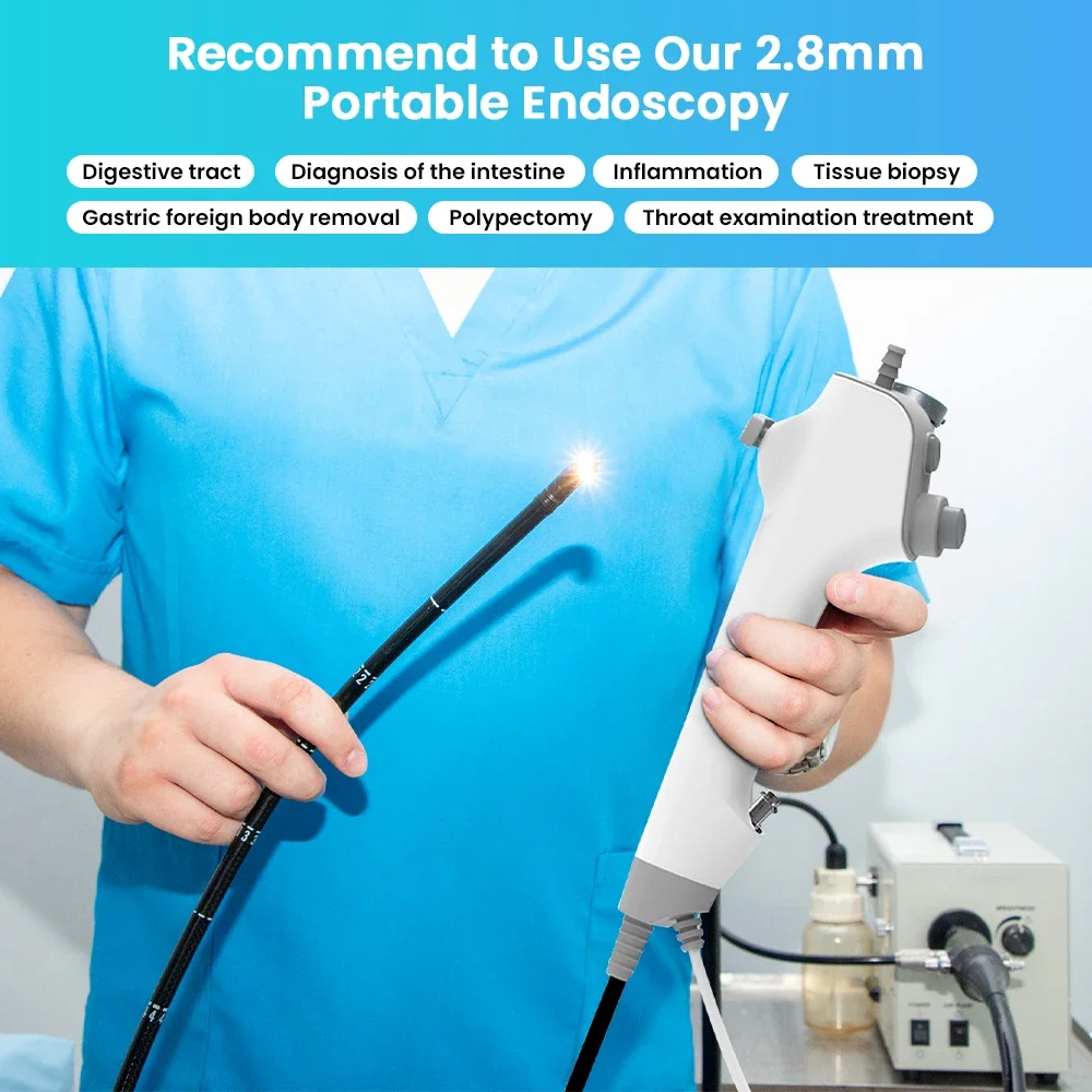 Características:1.Tracto digestivo (se recomienda utilizar nuestra endoscopia portátil de 2,8 mm): diagnóstico del intestino y el estómago, administración de medicamentos para tratar la inflamación local, biopsia de tejido, eliminación de cuerpos extraños átricos, polipectomía, tratamiento de examen de garganta